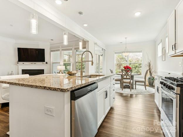 This beautifully designed 1.5 story home is ready for new owners. Situated just minutes to Harrisburg Town Center, restaurants, shopping, and walking distance to WW Flowe Park, making this a convenient location to accommodate most any lifestyle! From the moment you enter the 6 ft wide foyer, you will appreciate the architectural details of this home. The main level features a split bedroom plan with two bedrooms and two full baths, a spacious open concept living area with a gourmet kitchen, casual dining area, and a cozy fireplace to warm up the chilly winter days. The flex room/office has french doors allowing privacy if needed for remote workers or use this space for your favorite hobbies! The primary suite offers a tranquil space to unwind with views of the serene backyard. The spa like en suite bath has a soaking tub, stand alone tiled shower, dual vanities, and a large walk in closet. Step outside to your screened in porch where you can enjoy nature with that morning cup of coffee or relax with your favorite beverage at the end of a long day. The upper level opens up to a huge family room with two walk in attic storage areas! The suite styled third bedroom has a walk in closet, a full bath, linen closet, and plenty of privacy for guests. This home has over 2600 square feet and plenty of storage on both levels. The community features an outdoor pool for summer enjoyment. This peaceful retreat is waiting for you to write it’s next chapter!