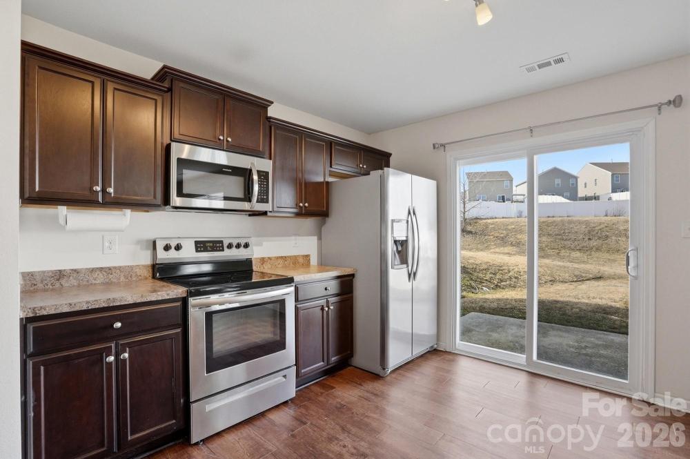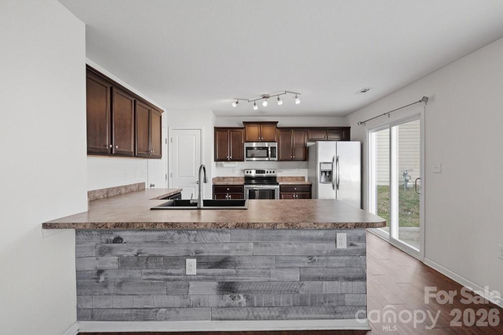 Welcome home to this beautifully maintained, move-in-ready gem! Perfect for first-time buyers or those looking to downsize, this 3-bedroom, 2-bathroom home features modern upgrades throughout. The kitchen shines with stylish new lighting and a sleek single-basin black sink, while the inclusion of the refrigerator, washer, and dryer makes your transition seamless. Welcome friends and family to the open concept family room with fireplace for those cozy nights. Your spacious primary bedroom awaits with your very own on suite with separate soaking tub and walk in shower... Enjoy the added security and efficiency of a front storm door and the convenience of a 1-car garage. Step outside to find a remarkably deep backyard—a blank canvas perfect for entertaining, gardening, or bringing your custom hardscape dreams to life. Affordable luxury awaits
