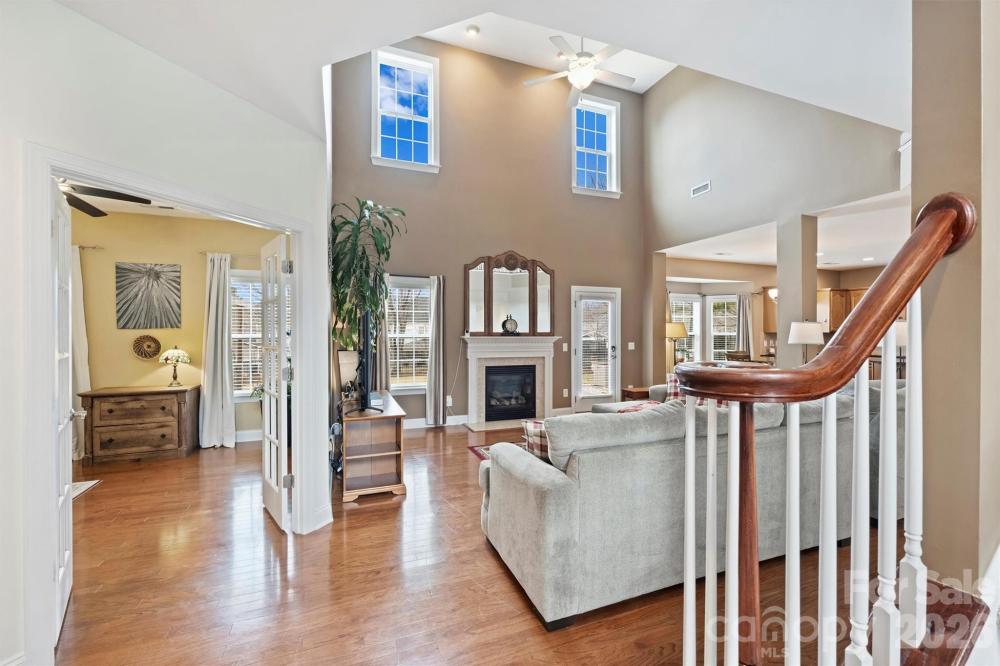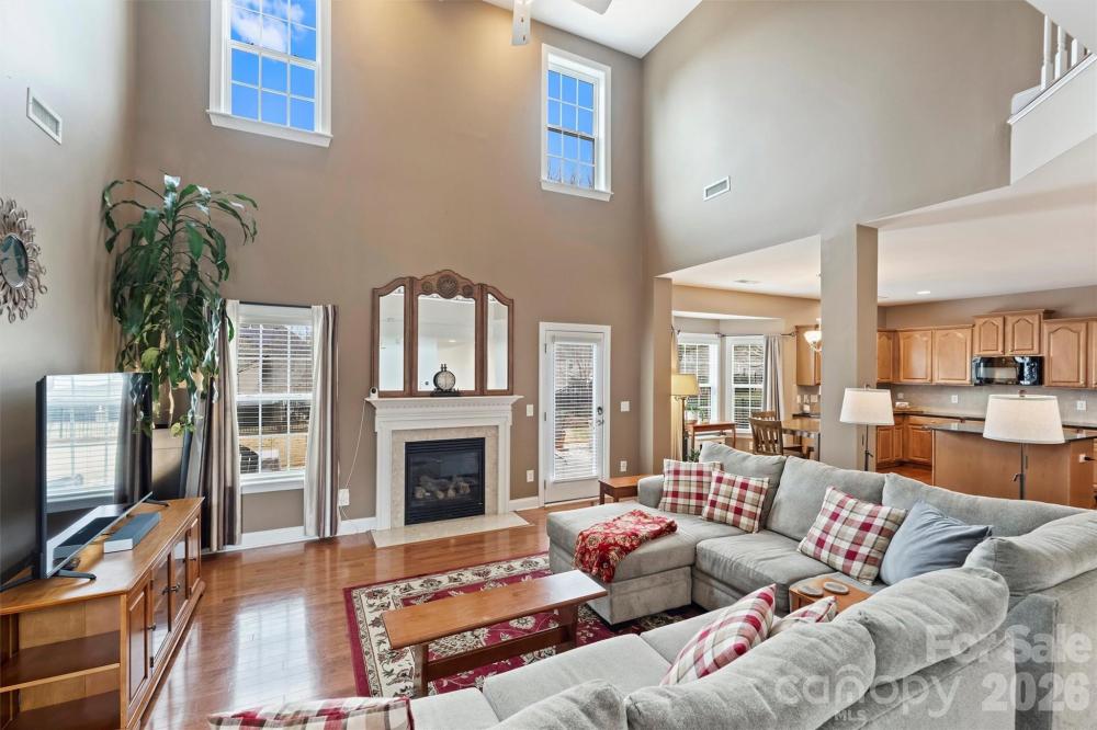 Welcome to this lovingly maintained, original-owner 4-bedroom home in Pelhem Pointe. Step into the foyer, flanked by formal living and dining rooms, which leads to a soaring two-story family room at the rear of the home — an inviting space designed for both everyday living and effortless entertaining. Open to the family room, the kitchen features granite countertops, generous prep space, and an island perfect for gathering. A dedicated office with glass doors offers an ideal work-from-home setting, while fresh neutral paint creates a bright, cohesive, move-in-ready feel. Upstairs, vaulted ceilings in the bedrooms add architectural interest. The secondary bedrooms share a hall bath, while the spacious primary suite offers a large walk-in closet and ensuite bath with soaker tub — a true retreat at the end of the day. Enjoy quiet mornings on the covered front porch or unwind on the extended patio overlooking the fenced backyard, which comes alive with spring blooms. Gutter guards add low-maintenance peace of mind. Located just a short walk to the neighborhood pool and playground, this home is also convenient to I-85, shopping, dining, medical care, and desirable Cabarrus County schools. Schedule your tour before this one is gone!