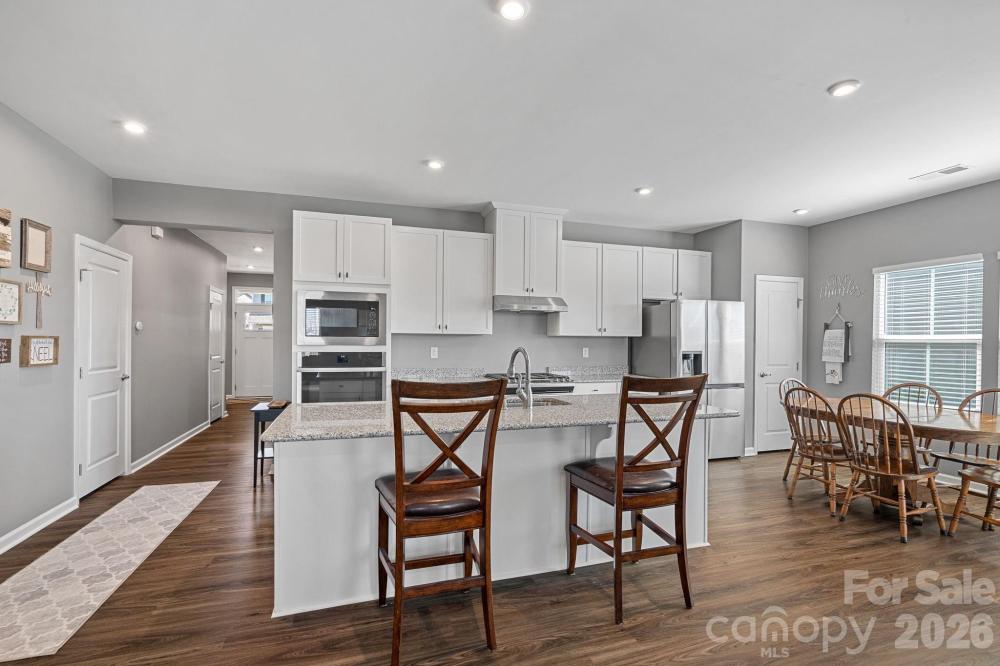 Welcome home to this beautifully maintained one-level gem built in 2019, offering modern comfort and effortless living all on one floor! This thoughtfully designed 3-bedroom, 2-bathroom home features a bright, open-concept layout perfect for both everyday living and entertaining. The spacious living area flows seamlessly into the dining space and stylish kitchen, complete with granite countertops, soft-close cabinet drawers, and a large prep area that makes cooking a delight. Durable and attractive LVP flooring runs throughout the main living areas, providing both style and easy maintenance. The primary suite is highlighted by a tray ceiling, generous walk-in closet, and a private ensuite bath designed for relaxation and convenience. Additional highlights include two secondary bedrooms, full hall bathroom, 2-car garage with extra storage space, fully fenced backyard ideal for pets, play, or outdoor gatherings. Located in a vibrant community with outstanding amenities, residents enjoy access to a community pool, clubhouse, fitness room, playground, and scenic walking trails. Even better — both the elementary and middle schools are located within the neighborhood, adding incredible convenience. Just minutes from shopping, restaurants, and major highways, this home offers the perfect blend of peaceful neighborhood living and everyday accessibility. Don’t miss your opportunity to own this move-in ready home in a highly desirable community — schedule your showing today!