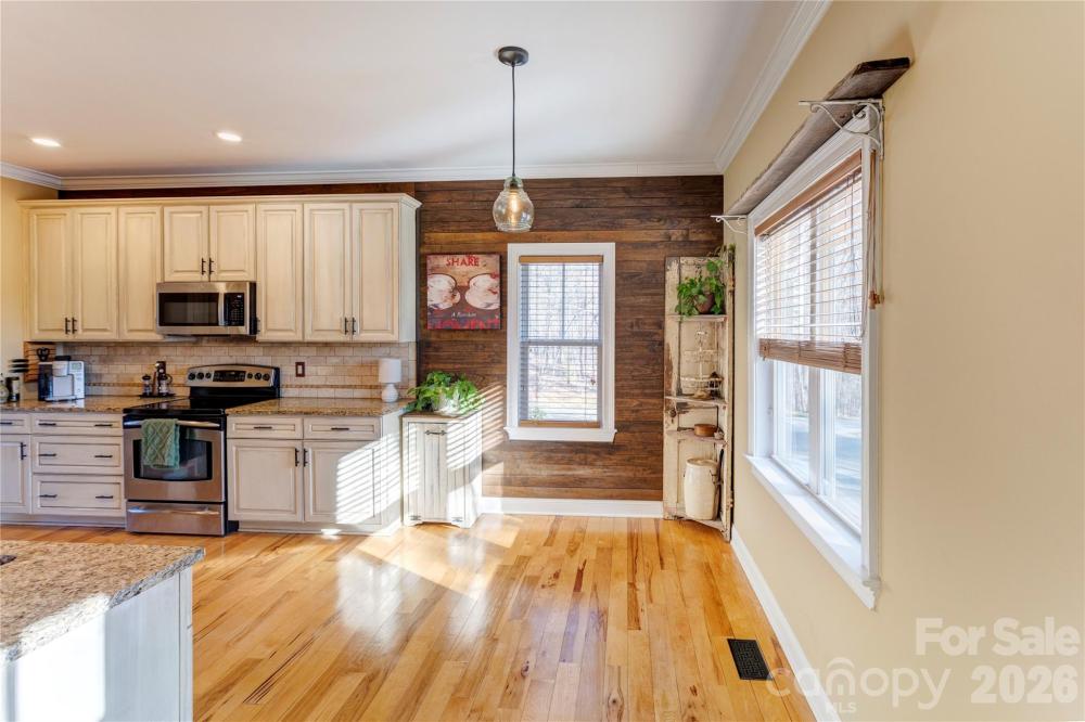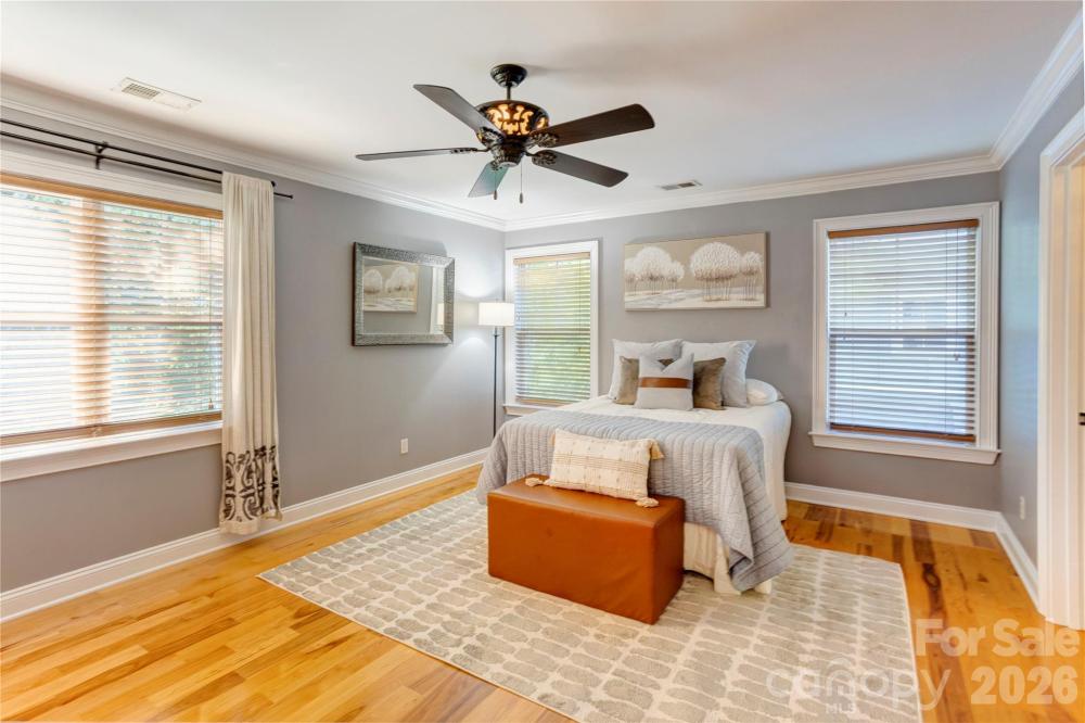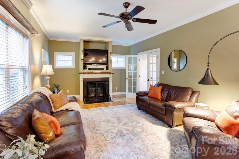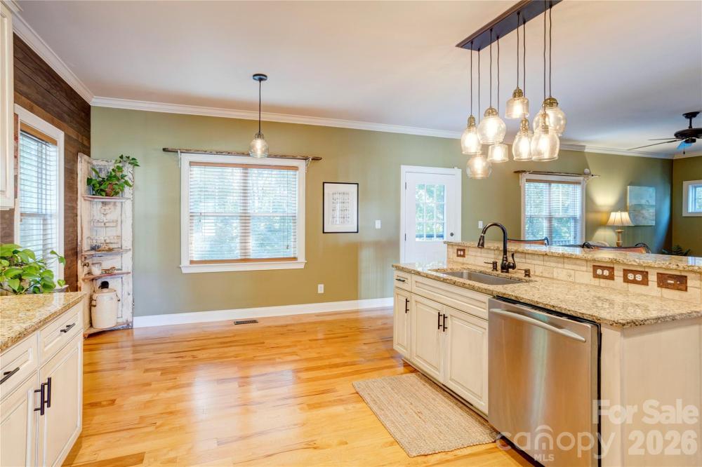 Highly desired Afton Village home with stunning refinished Hickory wood floors throughout. Custom touches include a handcrafted mantel, fireplace screen and staircase, plus walnut inlay in the dining room floors. The stone sidewalk and step entrance of the home offers a hand crafted rail by a local craftsman. The spacious kitchen opens to a Trex deck overlooking the serene woods of Dorton Park. Merely a short distance out the back door to access the park. Enjoy morning coffee on the cozy front side porch. Just steps from Afton Village shops offering libations, food, entertainment and the amenities of Dorton Park. Dorton Park offers 3 playgrounds, 2 disc golf courses, soccer fields and tennis courts as well as reservable shelters. You can truly play where you live! Not to mention the Cannon Cabarrus West campus fitness facility with classes and indoor pool is a short distance away. The 550sf heated and cooled basement workout room offers endless possibilities. Major updates include HVAC (2022–2024) and Roof (2023). Don’t miss this beautifully maintained home!