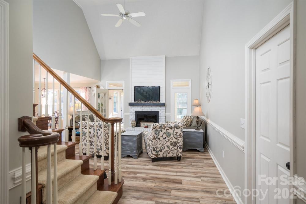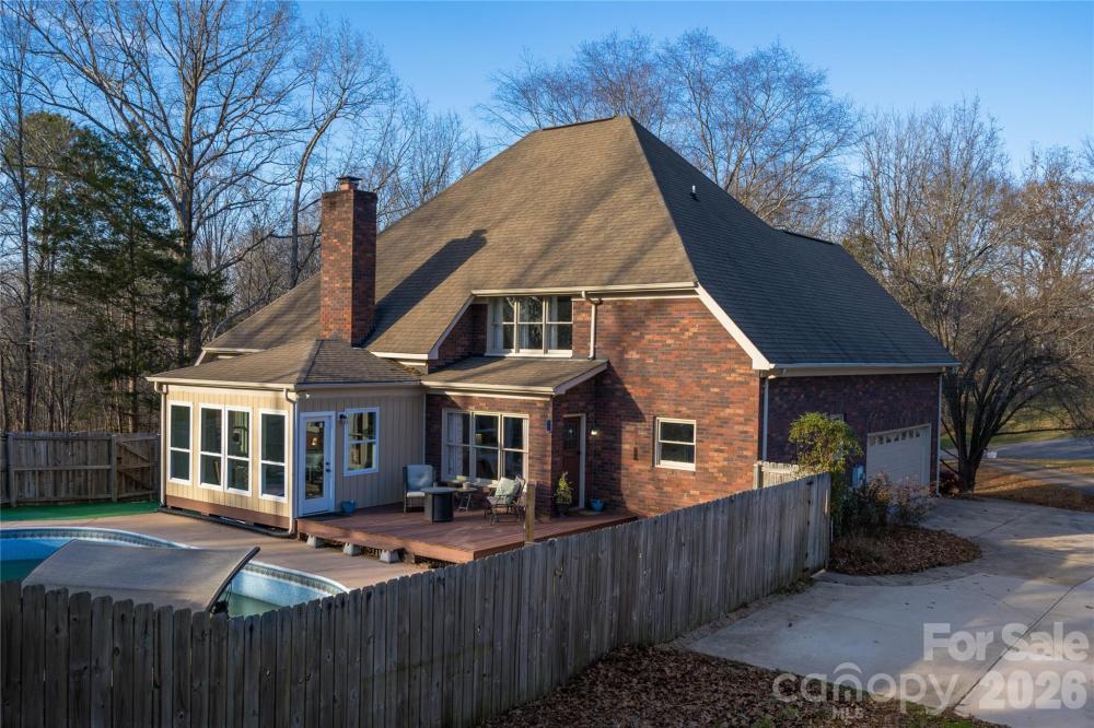 Tucked away on a private 1.35 acre cul-de-sac lot in the established English Woods community, this beautifully updated brick 3-bedroom, 3.5-bath home offers over 3,100 square feet of versatile living space, blending fresh updates with timeless charm. Step inside to the foyer with formal dining room to the left, walk past the stairs to the great room with two story vaulted ceiling and showcased by the whitewashed brick with shiplap accented fireplace. The spacious main-level primary is a true retreat, featuring his/her walk-in-closets, newly renovated bathroom with new shower, vanities, and added direct access to the pool area. At the heart of the home, the recently renovated kitchen includes granite counters, newly painted cabinetry with new hardware, added backsplash, bar seating, ample storage, and flows seamlessly into the dining area. Enjoy year-round living in the sunroom, and step outside to the private backyard oasis with your large in-ground pool, the perfect companion to sunny Carolina summers. Huge wooded buffer from neighbors mean it really is private! Did we mention the pool has a 10 foot deep end with diving board? Can you hear the splashes already? Upstairs includes 2 bedrooms, a huge bonus room, and an additional flex room, generous closets, and easy access to attic storage. Recent upgrades include new designer interior paint, New Pergo® laminate flooring and carpet, many new lighting fixtures, recently expanded driveway with expansive concrete parking area—a perfect area to shoot some hoops! No HOA, close to Downtown Concord and only pay county taxes (Save $$$). Schedule your showing today!