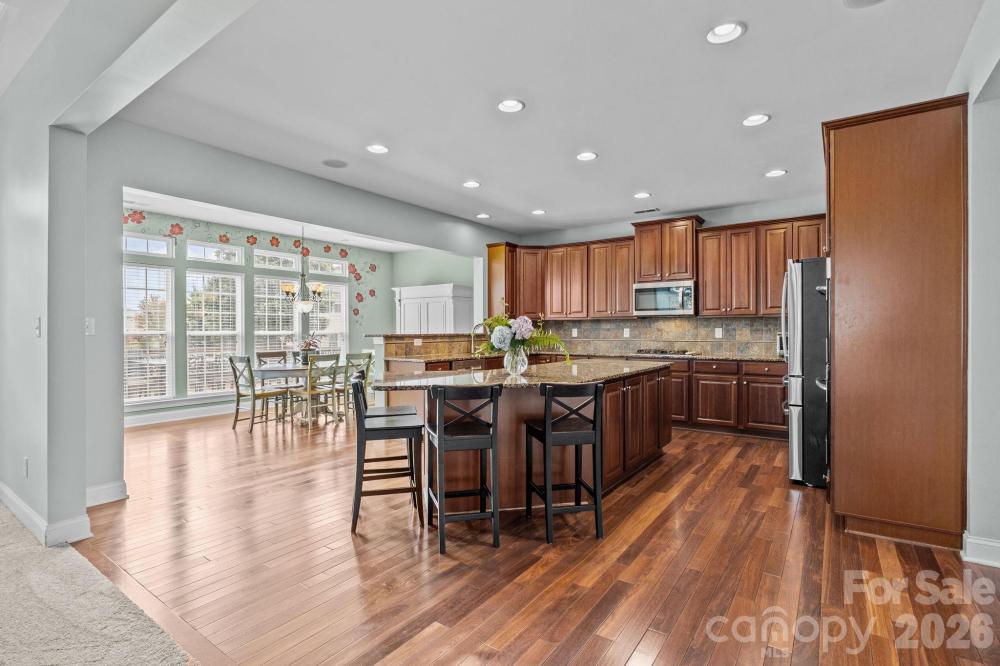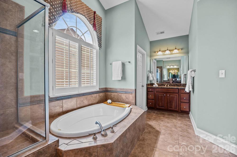 Welcome Home! This is a Beautiful warm and welcoming FORMER MODEL HOME that is spacious and full of special features and updates. The main level offers an open spectacular chef’s kitchen complete with Stainless Steel appliances: gas cooktop, double wall ovens, microwave, dishwasher. An abundance of cabinetry and an oversized island with seating. The Great Room features a Coffered Ceiling and a gas-log fireplace with beautiful stone and wood mantle. Private OFFICE/STUDY with French doors, formal dining room and a formal living room, sunny morning room/ casual dining room, 1/2 Bath, and a Butler’s Pantry/coffee bar complete the main level space. Pristine Wood Floors, NEW Carpet and Paint, Surround Sound and extra finishes. UPSTAIRS: Luxury Primary Suite features a sitting area w/columns and a spa-like bath complete with large soaking tub, oversized shower, dual vanities, and dual closets. There are Crown moldings, as well as a TRAY CEILING and Vaulted Ceilings. The Additional nice sized bedrooms include a private guest en-suite. A Large Bonus Room (optional 5th bedroom) and convenient laundry room completes the upstairs. Situated on a corner lot with established landscaping for privacy. Enjoy the abundance of outdoor spaces: A Front Porch, Double Decks, a PAVER PATIO complete with built-in Benches and FIREPIT ! **Architectural Roof ( 2022), HVAC (2017), and a huge 616 sq ft finished insulated Oversized Garage (built to be a 3 car garage). Resort-style amenities around the corner including a large pool, clubhouse, fitness room, playground, and walking trails. The Hector Henry GREENWAY is in the neighborhood. Patriots Elementary within the community, and easy access to Charlotte, I-485, and I-85. Luxury, lifestyle, and location—welcome home!