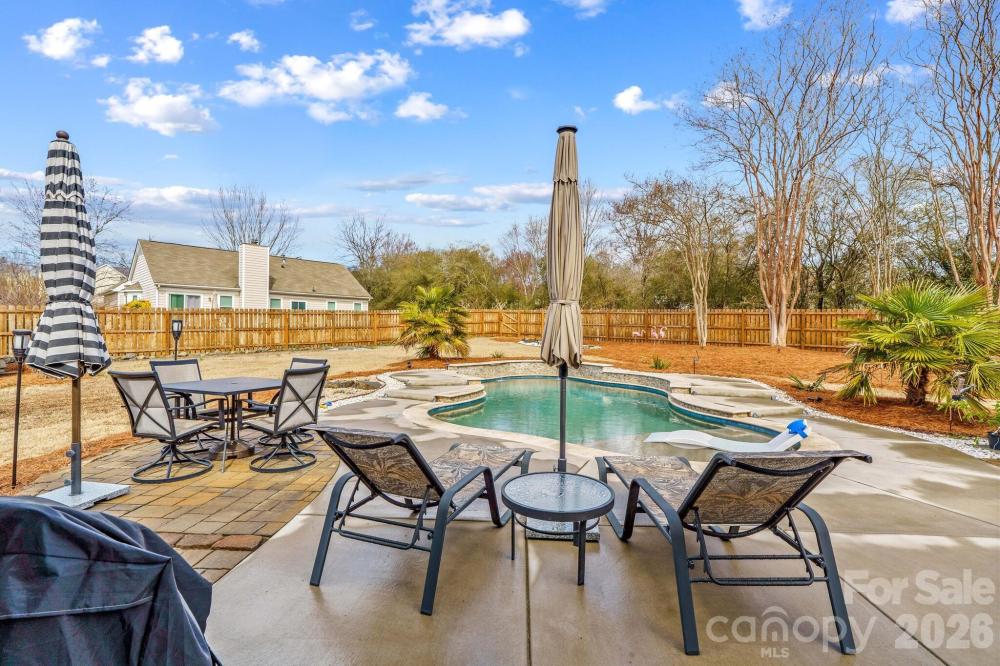 Welcome to your private oasis in sought-after Sheffield Manor in the desirable Concord area! Tucked away on a cozy cul-de-sac and situated on .37 acres, this stunning 2,505 sq ft home offers 4 bedrooms, 2.5 baths, and outdoor living at its absolute finest. Step into your backyard paradise featuring a gorgeous concrete saltwater pool complete with waterfall, tanning deck, heater, and lighting — designed for both relaxing evenings and unforgettable gatherings. The beautifully landscaped yard is complemented by over 800 sq ft of concrete decking and patios, plus an additional 468 sq ft of Trex decking with a covered area — perfect for entertaining or unwinding after a long day. The fenced backyard (just 3 years old) includes three gates and offers the ideal space for play and privacy. Inside, you’ll find spacious, light-filled rooms and thoughtful updates throughout. The main living area flows seamlessly into the large kitchen with pantry and breakfast/bar area, all overlooking the pool. A wonderful office with French doors and a formal dining room complete the main level. Upstairs, you’ll find generously sized bedrooms, classic baths, and a versatile bonus/bedroom space with built-ins. Recent updates include fresh interior paint, updated lighting throughout, a roof just 3.5 years old, a remodeled half bath, and a beautifully renovated primary bath featuring a stunning tiled shower — and so much more! Located just moments from the community clubhouse, pool, playground, and courts, this home truly offers the perfect blend of luxury, comfort, and convenience. So much to love — come fall in love with this little piece of heaven!