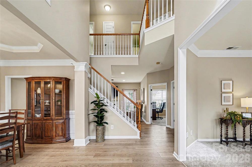 Welcome Home to 9584 Indian Beech Avenue. This move-in ready. conveniently located home features 4/5 Bedrooms, 2.5 baths and is located in the sought after community of Moss Creek. From the moment you step into the inviting 2 story foyer, you will feel the warmth and openess of this spacious home. Notice the natural lighting as well as the 9 foot ceilings and beautiful luxury vinyl plank flooring. On the right side of the Grand Foyer is an open Flex Room with crown molding and to the left is a Dining Room with tray ceilings, crown molding and wainscoting. Continue toward the Family Room and you'll find a Bonus Room with French Doors. You can use this space as a bedroom, office, craft room, playroom, etc... the possibilities are endless. The floor plan continues to flow easily from the Family Room into the Breakfast Area and Kitchen. Enjoy entertaining and cooking in the updated Kitchen featuring gorgeous Quartz countertops, Tile backsplash, lots of beautiful wood cabinets, an Island, a Pantry, recessed lighting, a Gas Stove and Stainless Steel Appliances. Step outside the back door onto a patio with a Retractable Awning and a Fully Fenced, level backyard, ideal for pets, kids, grilling or just gathering and hanging out. Upstairs, you will find a generous Primary Suite which serves as a private retreat. This suite includes an overside Bedroom, a huge walk in closet, dual separate vanities, a garden tub, walk in shower and water closet. The 3 additional secondary bedrooms are a nice size and the spacious laundry room is in a well planned location, right off the hallway. Home Features also include 9 foot ceilings with ceiling fans in most rooms, neutral paint, 2 inch blinds, gas log fireplace, newer carpet installed in 2023 as well as luxury vinyl plank floors installed in 2021, an entire house water filtration system and full yard irrigation provided by Moss Creeks HOA. The subdivision of Moss Creek is known for it's top rated schools including a Blue Ribbon Elementary school, its entertaining neighborhood amenities and an overall convenient location. Neighborhood amenities include a playground, tennis, pickleball and basketball courts, several different pools, a fitness center and Clubhouse. There are sidewalks and street lights as well as a walking trail. The location is super convenient to interstates, shopping, entertainment, etc. Come see for yourself all this home has to offer!