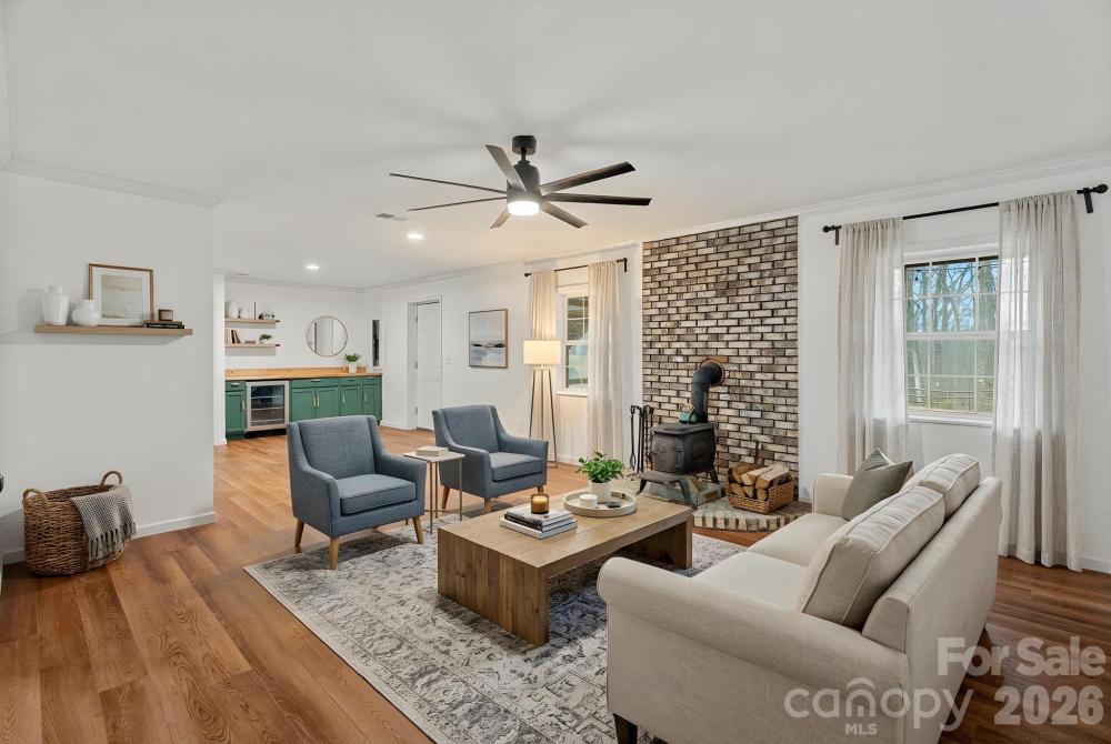 Welcome to your dream home! Nestled on 3.12 private acres, this stunning residence offers a perfect blend of modern amenities and serene outdoor living. Enjoy 3 spacious bedrooms plus a bonus/flex room, including primary conveniently located on the main floor. The home boasts 2 full baths and 2 half baths, providing ample comfort and privacy for family and guest.The heart of the home features quartz countertops that exude elegance, complemented by wood flooring throughout the main level, creating a warm and inviting atmosphere. So many perks you have to see, including but not limited to plantation shutters through-out and a unique laundry chute from upstairs that leads directly to the laundry room making chores a breeze.Discover a beautifully finished walk-out basement complete with half bath, an area for an office or bedroom, beverage cooler and custom cabinetry, and a wood burning stove perfect for entertaining or relaxing. Also, in the basement, you'll notice the single car garage has been transformed into a home gym/play area allowing you to maintain fitness without leaving your home. You'll want to step outside onto the Trex decking of the back deck where you can enjoy peaceful views of your expansive backyard. The screened-in picnic area below the deck provides a charming space for outdoor dining, while the custom-built fire pit area invites cozy evenings under the stars. This home is not just a residence; it's a lifestyle. With its perfect combination of comfort, luxury, and functionality, you'll enjoy every moment spent here. Dont miss the opportunity to make this exquisite property your own!