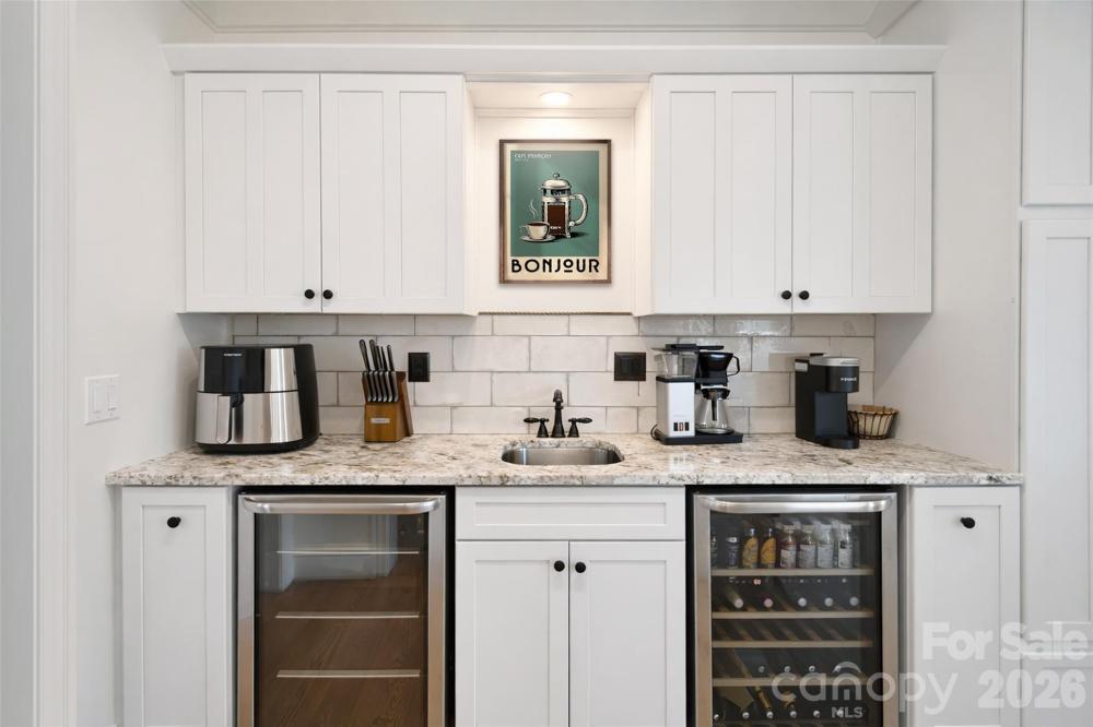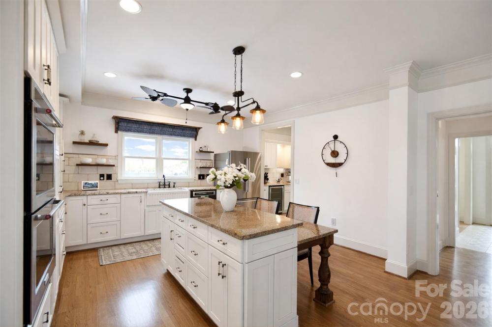 Discover timeless elegance in this stately Georgian-designed five-bedroom home, gracefully set on three-quarters of an acre in the picturesque King’s Crossing neighborhood, adjacent to Cannon School. Offering just over 3,500 square feet of thoughtfully designed living space, this residence blends classic architecture with extensive modern updates. New updated painting throughout! The home features both an attached garage and a detached, all-brick two-car garage—ideal for additional storage, a workshop, or car enthusiasts. Inside, recent upgrades are found throughout, including brand-new windows, updated hardware, electrical receptacles, and switch plates, creating a cohesive and refreshed interior. At the heart of the home is a completely reimagined kitchen, showcasing a Wolf gas cooktop, soft-close cabinetry, and granite countertops—perfectly suited for everyday living and entertaining alike. The owner’s suite, completed earlier this year, is a true retreat with quartz countertops, marble floors, and refined finishes throughout. With generous living spaces, a spacious lot, and a prime location in one of the area’s most desirable neighborhoods, this home offers a rare opportunity to enjoy classic style with modern comfort. Additional notes: One of the four second-story bedrooms does not have a permanent closet. The home is connected to city sewer. One original window remains, located in the owner’s ensuite. Listed under recently completed appraisal