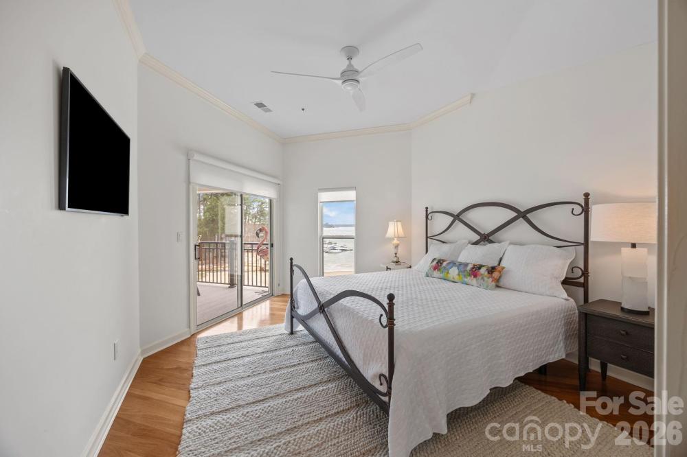 TOP FLOOR living with sweeping big water views in the desirable Half Moon Bay community in Kings Point on Lake Norman. Enjoy spectacular year round sunset views in this beautifully renovated 2-bedroom, 2-bath condo that has been updated inside and out, offering a modern, clean design that feels both stylish and comfortable. The open living area is filled with natural light and designed to showcase the expansive water views, creating an ideal setting for both everyday living and entertaining. The renovated kitchen flows seamlessly into the main living space, while updated finishes throughout the home provide a cohesive, move-in-ready feel. A cozy gas log fireplace adds warmth and character, and the private balcony offers the perfect place to unwind while enjoying sunset views over the lake. The primary suite features a spacious layout, walk-in closet, and updated bath, while the second bedroom and full bath offer flexibility for guests or a home office. This unit has a reserved parking space just steps away, plus there are guest parking spots. Residents enjoy resort-style community amenities including a pool, expansive beach area, gazebo with boat drop-off access, and kayak storage, creating an easy, low-maintenance lake lifestyle. The community is conveniently located near marinas, dining, shopping, and everything Cornelius and nearby Charlotte have to offer. Seasonal note: lake levels are typically lower during winter months, with water levels rising again in the spring. Whether used as a full-time residence or a weekend retreat, this penthouse condo offers low-maintenance Lake Norman living with exceptional views and a prime location. Large storage closet right outside the front door.
