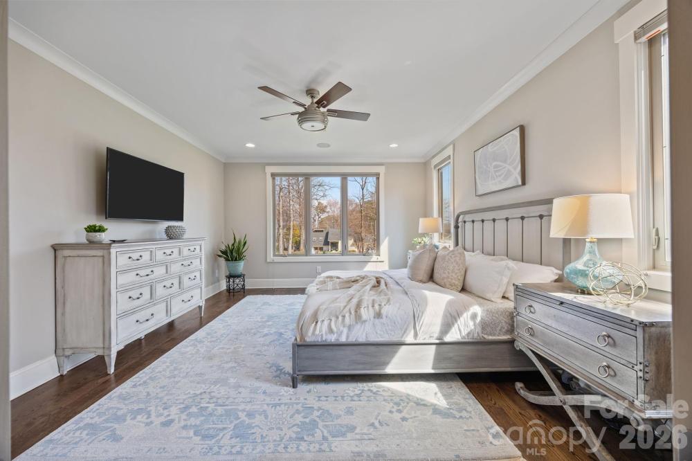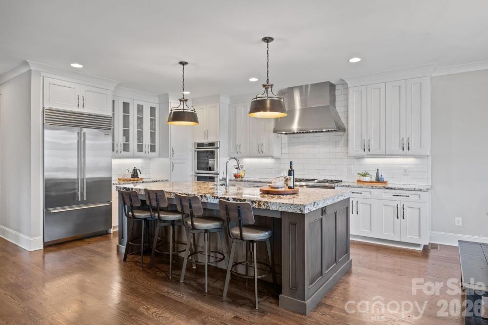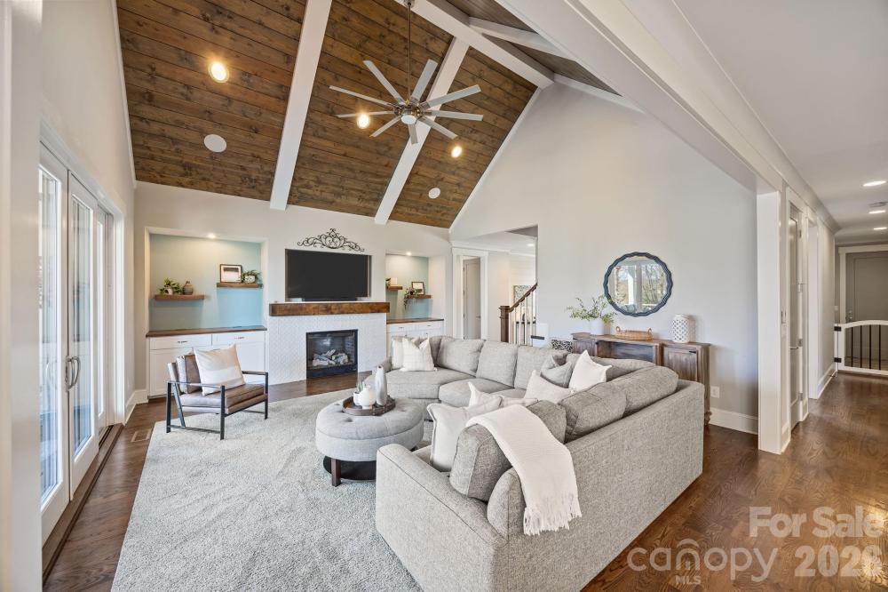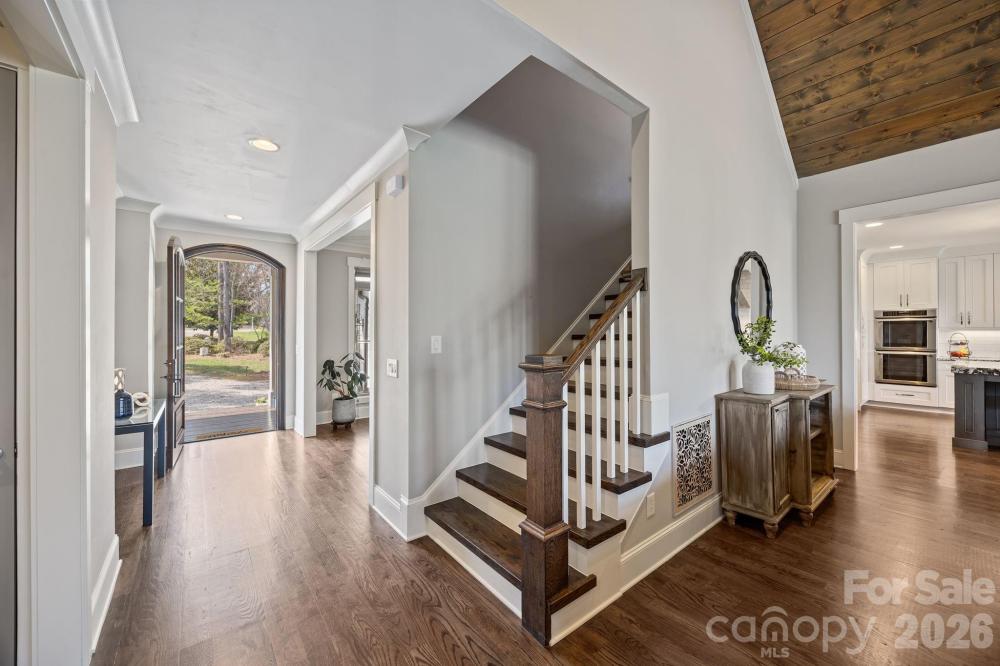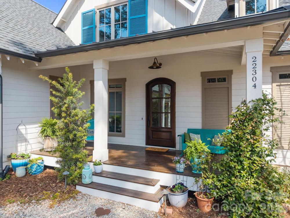 Custom-built and move-in ready, 22304 John Gamble Rd blends style, function, and charm in the heart of Cornelius. Enjoy seasonal water views from the covered back porch on a .61-acre fenced lot with mature trees. Inside, the open floor plan and vaulted ceilings create a light-filled, open feel with a stunning great room with gas log fireplace, built-in cabinets and oversized doors that open to the covered back porch with vaulted ceiling. The chef’s kitchen features Thermador appliances, a 6-burner gas stove, large island, designer lighting and custom cabinetry. The main level offers a luxurious primary suite and spa-like bathroom with custom cabinets, tiled shower with frameless glass, and a large walk-in closet that includes a laundry area. Also on the main floor is an additional bedroom with full bath, an office which can also be used as a formal dining room, and a custom drop zone area or space for a pet. Upstairs includes a spacious laundry room, large bonus room, flex room, bedroom with en-suite bath, 4th bedroom, 4th full bath, and walk-out storage. Prepare to be impressed with upgrades and attention to detail throughout which include: gorgeous hardwood floors on both levels, 2 laundry areas, custom shades, extensive moldings and shiplap detail, granite countertops and tiled showers in all 4 bathrooms, walk-in closets, plenty of extra storage space and an oversized 2 car garage. Located in a top rated school district and walking distance to The Fresh Market, dining, and shopping!