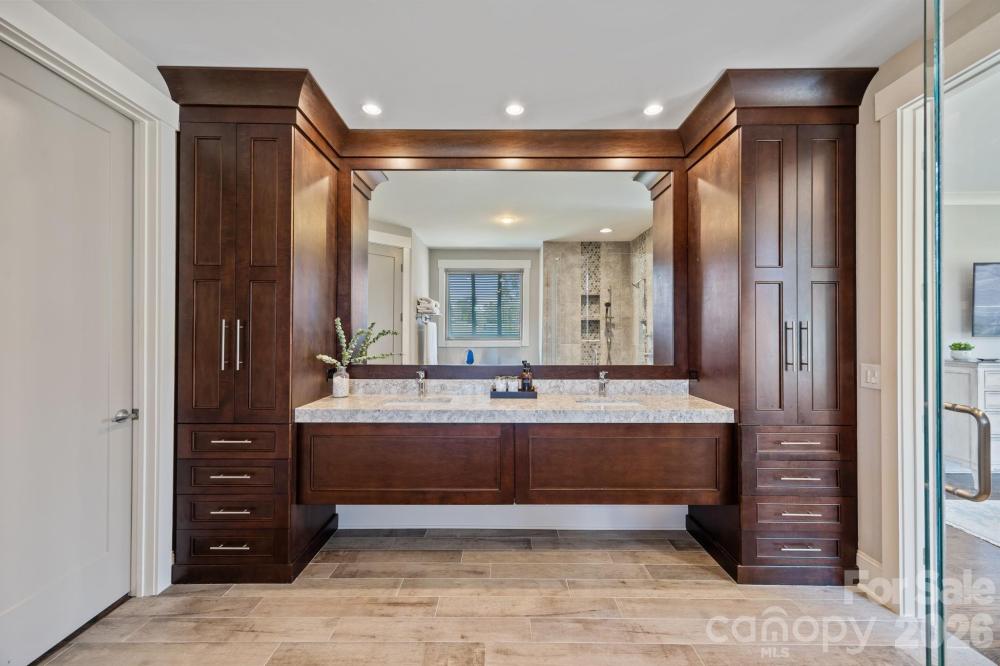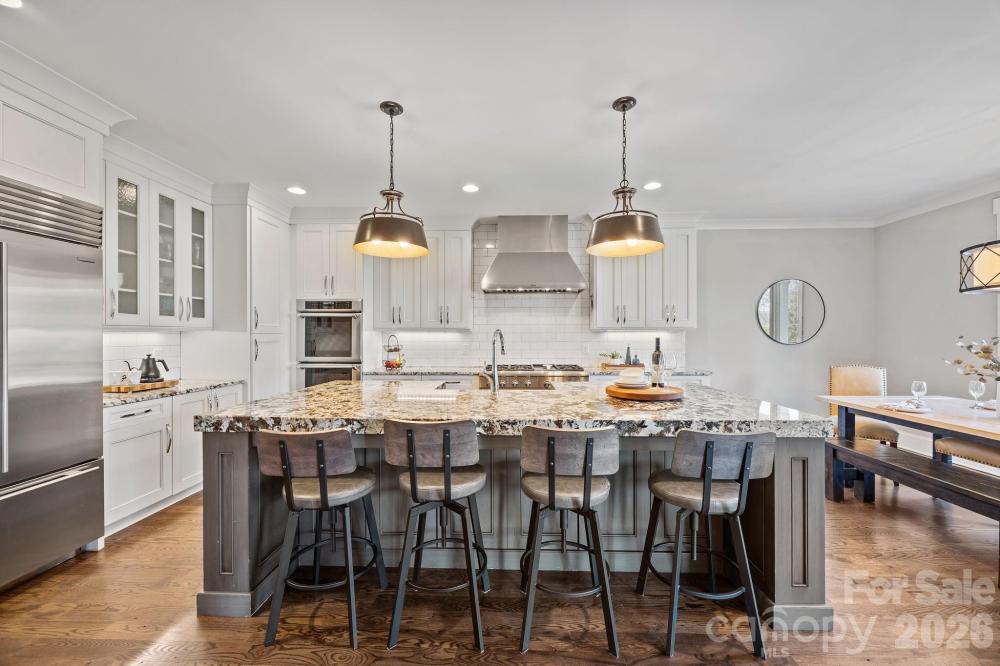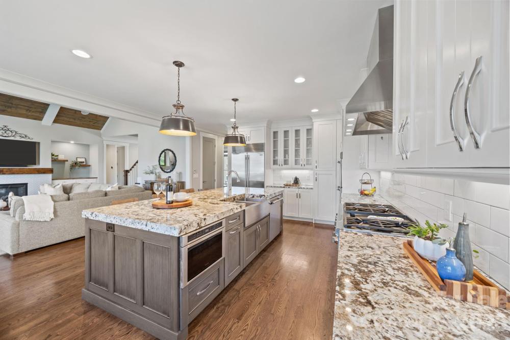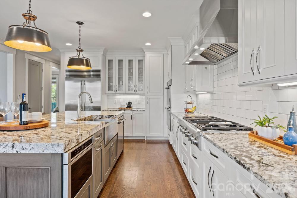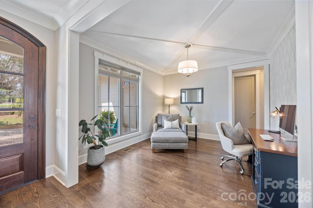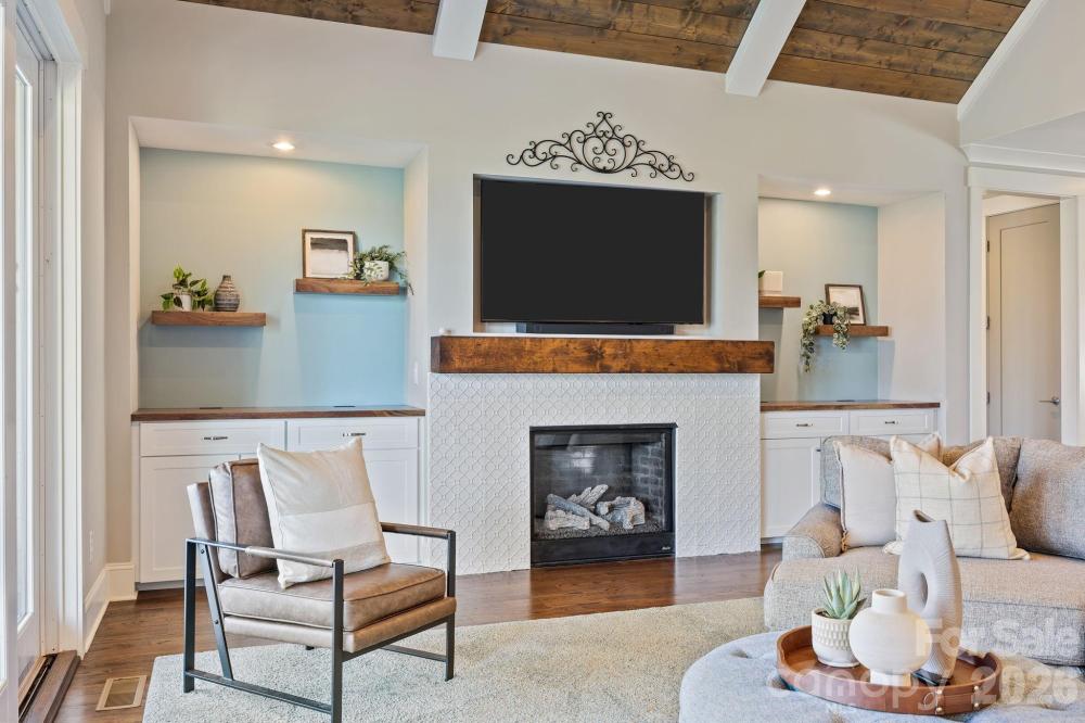 Custom-built and move-in ready, 22304 John Gamble Rd blends style, function, and charm in the heart of Cornelius. Enjoy seasonal water views from the covered back porch on a .61-acre fenced lot with mature trees. Inside, the open floor plan and vaulted ceilings create a light-filled, open feel with a stunning great room with gas log fireplace, built-in cabinets and oversized doors that open to the covered back porch with vaulted ceiling. The chef’s kitchen features Thermador appliances, a 6-burner gas stove, large island, designer lighting and custom cabinetry. The main level offers a luxurious primary suite and spa-like bathroom with custom cabinets, tiled shower with frameless glass, and a large walk-in closet that includes a laundry area. Also on the main floor is an additional bedroom with full bath, an office which can also be used as a formal dining room, and a custom drop zone area or space for a pet. Upstairs includes a spacious laundry room, large bonus room, flex room, bedroom with en-suite bath, 4th bedroom, 4th full bath, and walk-out storage. Prepare to be impressed with upgrades and attention to detail throughout which include: gorgeous hardwood floors on both levels, 2 laundry areas, custom shades, extensive moldings and shiplap detail, granite countertops and tiled showers in all 4 bathrooms, walk-in closets, plenty of extra storage space and an oversized 2 car garage. Located in a top rated school district and walking distance to The Fresh Market, dining, and shopping!