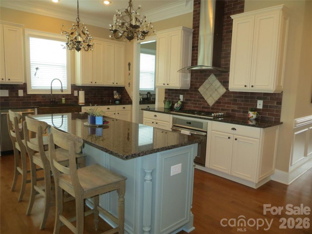 This beautiful 5 bedroom, 4.5 bath home in the lovely Charleston-style Antiquity neighborhood of Cornelius is on a quiet cul-de-sac overlooking the preserve. The wrap around porch and larger lot make this home a rare find. With the extras typical of the Cunnane builders, the home offers 10 foot ceilings, 5 piece crown moldings, beautiful woodworking, cabinetry, flooring and lighting. The first floor includes: a large master bedroom and bath with shower, soaking tub and walk-in custom finished closet; the Great room with gas fireplace adjoins a breakfast nook and Kitchen with all appliances including 2 full sized ovens; a butlers pantry leads to the Dining room and makes entertaining easy; an Office, half bath and laundry room finish this floor. The second floor features: 4 more large bedrooms and 3 full bathrooms. One bedroom is currently being used as a Media room. A large walk-in attic includes lighting and electrical outlets. The rear facing 2 car garage with opener is finished with poly-coated floors, built in cabinetry, workbench and ceiling fan. An extra parking space adjoins the outdoor patio with gas grill hookup overlooked by the screened in porch.