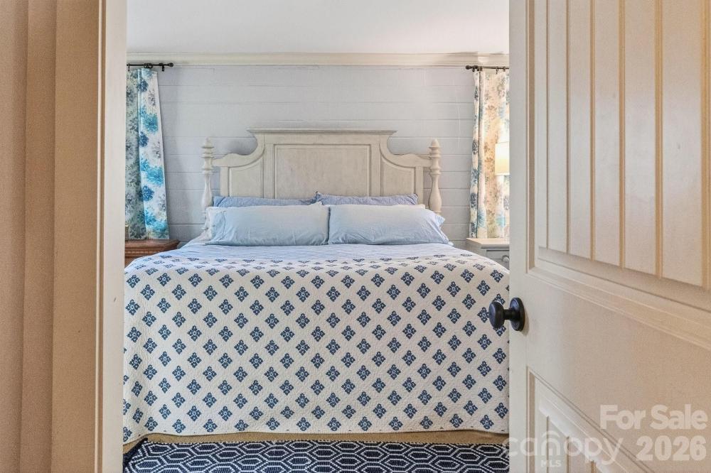 Unique opportunity to own a custom log home (built as a 3 bedroom) in the Bahia Bay water access community located off the desirable Torrence Chapel Road Peninsula. Two back bedrooms were renovated to make one large Primary suite. Access to I77 is just a short drive down Torrence Chapel Road. Enjoy the convenience of nearby shopping, restaurants and parks. The Bahia Bay community boasts a community lot with dock, boat ramps, fire pit and picnic tables. The meticulously manicured landscaping includes flowering trees and shrubs which combined with stone hardscaping contribute to the charming cottage feel of the home. Exterior features include batten board side gable trim boards, stone facing accent around both front and rear doors. Foundation facing is stone accent as well. Elk Prestige High Definition asphalt shingle roof. Front porch with Pergola top and custom laser cut metal iron insert panels showcasing a pine tree design. The rear covered porch spans the entire width of the home and offers a peaceful outdoor retreat. Enjoy the private level rear yard of this quarter acre home site. Partial fencing and no houses to immediate rear of the site provide a relaxing space for outdoor activities. The over sized driveway allows for parking of four to six vehicles. Inside the home is rich with high end finishes and custom details throughout. Front entry opens to the gathering, dining and kitchen areas featuring a open concept design. Kitchen cabinets with beadboard insert detailing and glass front. Granite counter tops, island with additional storage below, stone tile backsplash and stainless appliances make the kitchen both functional and inviting. Recessed lighting with mood setting dimmers in the kitchen area. Contemporary stone accent chandelier in dining room. French doors off dining room lead directly to the lovely covered rear porch. Wide hallway leading to bedrooms and bath adds to spacious feeling of the home. The bathroom is a true showplace with travertine counter top and copper sink. Natural stone tile floor and tub surround. Built in vanity cabinet with additional built in cabinet over the water closet. Decorative rubbed bronze mirror completes the modern rustic look which runs consistent throughout the home. Plantation shutters throughout the home create a light filled environment. Millwork includes five inch crown molding and eight inch baseboards. Solid core interior doors with bead board detailing, high grade lighting fixtures and rubbed bronze hardware elevate the space. Engineered hardwood floors flow through the main living area and secondary bedroom. Constructed and permitted as a three bedroom home the primary bedroom was thoughtfully expanded through combination of two bedrooms. Layout of the floor plan allows for easy conversion back to three bedrooms based on personal preference. Secondary bedroom features wood floors, two built in bookshelves and a Hunter ceiling fan/light fixture. Significant system updates include a complete exterior renovation in 2024 to include stripping, treating, hand sanding and staining of the logs. Addition of batten boards to gable ends, replacement of all rear porch posts, replacement of all exterior window trim, replacement of gable end soffit wood and staining of front and rear porch decks. water heater replacement (2024), Package Heat Pump System (2021), air sealing and blown in attic insulation (2016) water line from street to home replaced (2021).