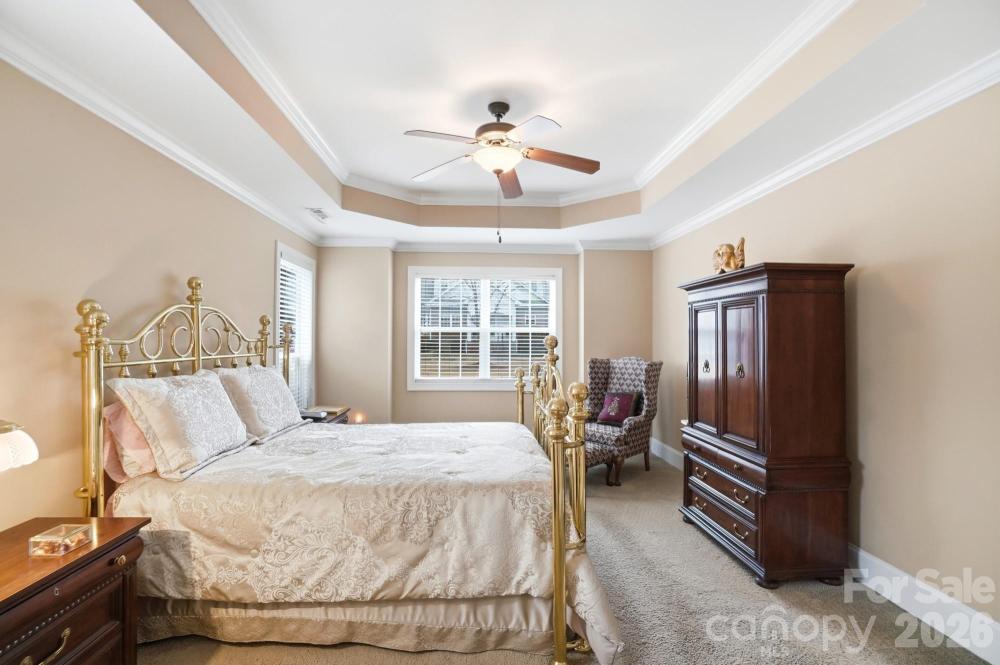 Just minutes from Lake Norman, shopping, dining, parks, and interstate access! Charming home in the desirable Harrogate at the Lake community in Cornelius, situated on a corner homesite with manicured landscaping and a welcoming covered front porch. The main level features hardwood floors, abundant natural light, and a spacious layout. The great room offers crown molding, a cozy fireplace, while the kitchen includes stainless steel appliances, breakfast bar, tile backsplash, and ample cabinetry. The owner’s suite on the main level features a tray ceiling, walk-in closet, and en-suite bath with dual vanity, soaking tub, and separate walk-in shower. Upstairs you’ll find spacious secondary bedrooms and a full bath. Enjoy low-maintenance living with lawn care included and easy access to Lake Norman, local parks, restaurants, and entertainment. Priced below assessed tax value. Sold as-is.