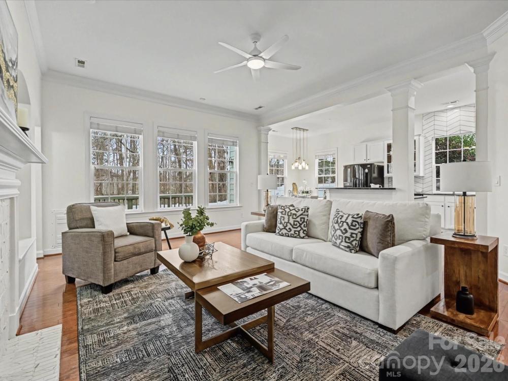 Charming Updated 1.5 Story Home in the sought after Westmoreland community. Once you enter you'll take note of the 10' ceilings and openness of the floor plan! There's a Multi purpose home office/Living Room and formal dining room, both accented with custom shutters. The spacious Great Room centers on a cozy fireplace with built-in bookshelves on each side. The adjacent kitchen features granite countertops, an updated tile backsplash, newly refinished cabinets in 2026, and a light-filled breakfast area that provides a casual dining spot. The main level primary suite, complete with a spacious walk-in closet and a fully remodeled 2024 bathroom, is privately positioned on the opposite side of two large bedrooms. A 4th bedroom/second primary suite with its own full bath is located upstairs--ideal for guests, a teen retreat, or home office. Outside, the fenced backyard offers privacy and a large deck. A special touch includes a clever “Dog Den” tucked under the staircase. Notable updates since current ownership: • 2023: Kitchen backsplash • 2024: New roof • 2024: Complete primary bath remodel • 2025: New water heater • Tiled guest bathroom floor • Replaced tile around fireplace • 2026: Kitchen cabinets refinished Residents enjoy community amenities including sidewalks, streetlights, a playground, and a pool undergoing full renovation—scheduled to reopen by summer 2026. Walk to Birkdale Village for shopping, restaurants, and events, with quick access to Lake Norman, highways, and more.