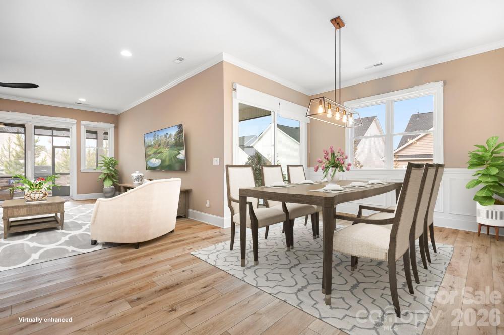 Experience a relaxed, refined way of life in the in the highly coveted “Forest” section of Bailey’s Glen, Lake Norman’s premier 55+ community. This beautifully designed home greets you with a classic brick façade, a rocking-chair front porch made for morning coffee, and a front-facing garage featuring built-in storage that’s perfect for a workshop or hobby retreat. Inside, the thoughtful split-bedroom layout blends comfort with effortless flow. Warm wood floors carry through the main living spaces, leading to a beautifully appointed kitchen that feels both functional and elevated. It features GE Profile appliances, including double convection ovens, gas cooktop, a farmhouse sink, soft-close cabinetry with pull-out lower shelves, a specialty upper cabinet designed for baking essentials, and two well-placed pantries — one thoughtfully extended for added storage. The expansive L-shaped screened porch that spans the back of the home, complete with entry from the dining room or great room. This stunning outdoor living space feels like an extension of the interior, offering multiple areas for dining, lounging, and gathering while enjoying fresh air, natural light, and peaceful surroundings year-round. The thoughtfully designed outdoor kitchen elevates the experience with a grill featuring rotisserie attachments, convenient drawers, and a beverage refrigerator — ideal for weekend barbecues, sunset dinners, or quiet evenings at home with friends and neighbors. A cozy flex space with closet and full bathroom provides options as a guest suite, creative space, or private workspace. The spacious laundry room connects directly to the primary bath and offers generous cabinetry and counter space for everyday convenience. The primary suite is a serene retreat, featuring dual custom walk-in closets accessed through a spa-like bath with dual vanities and a large walk-in shower. A unique doorway from the bedroom into the great room creates an easy circular flow through the home. With its seamless indoor-outdoor living, thoughtful design, and friendly neighborhood atmosphere, this home offers the perfect blend of comfort, elegance, and community in Bailey’s Glen.