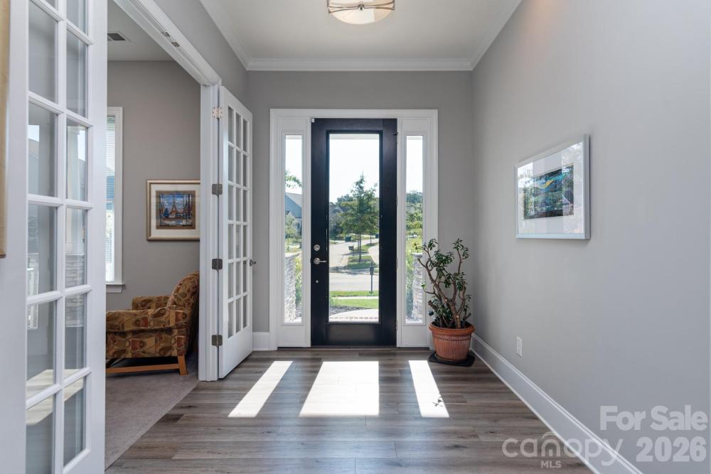 Welcome to resort-style living in the highly sought-after Bailey's Glen active adult community in Cornelius! This stunning 3-bedroom, 2-bath home offers an exceptional open floor plan designed for both everyday comfort and effortless entertaining. Soaring 10-foot ceilings and elegant 8-foot interior doors create a bright, spacious feel throughout the home. The gourmet kitchen is a true centerpiece, featuring stainless steel appliances, granite countertops, stylish backsplash, and abundant cabinetry—perfect for preparing meals and gathering with family and friends. The adjoining sunroom/breakfast area is filled with natural light, creating a warm and inviting space to start your day. Retreat to the peaceful covered back porch overlooking serene wooded views—your own private oasis for morning coffee or relaxing evenings. Professionally installed in-ceiling speakers delivering immersive sound throughout. House is wired for fiber optic internet. Wired for an electric car charger in garage. Oversized garage with storage closet. Enjoy low-maintenance, resort-style living with access to Bailey’s Glen’s exceptional amenities and vibrant community lifestyle, all just minutes from shopping, dining, and Lake Norman. The community has 2 full time lifestyle directors that will keep your calendar full. It's like being on vacation and never having to leave. Enjoy the pool, fitness, bocce, pickleball, shuffleboard, woodshop, pottery and so much more! This is the perfect blend of luxury, comfort, and convenience—don’t miss your opportunity to call it home!