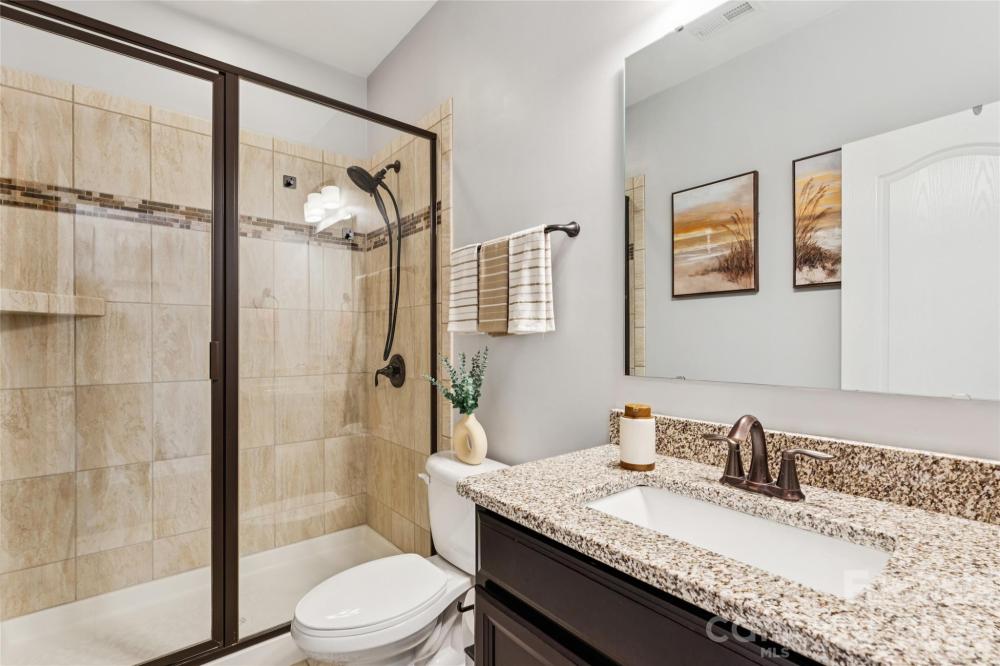 Welcome to Avery Park, one of Cornelius’ most desirable neighborhoods, where charm, convenience, and outdoor living come together. This well-designed home offers a functional floor plan with a guest bedroom and full bath on the main level and large dining room. The open layout features a open kitchen with a large island that flows into the main living area, creating a comfortable space for everyday living and entertaining. Recent upgrades enhance the kitchen including quartz countertops, updated kitchen cabinetry, tile backsplash, gas cooktop, wall microwave and oven with a large walk-in pantry with solid shelving and a new kitchen hood. The living area features a 54” custom linear gas fireplace with designer tile surround and a shiplap accent wall, adding warmth and character. Upstairs features a split floorplan with a large loft, the primary en-suite, two additional bedrooms, and a dedicated office, ideal for working from home or a quiet study space. The primary suite includes custom closet storage by Closets by Design. Secondary bedrooms feature large closets and tons of natural light! Outdoor living is highlighted with a rocking chair front porch and an impressive backyard retreat. Enjoy Trex composite decking and a spacious Tecoblock paver patio with seating wall and firepit, plus a custom pergola perfect for relaxing or entertaining. The premium fenced lot backs to greenspace, providing privacy and peaceful views along with a robotic lawn mower that will convey! Avery Park offers wonderful amenities including a dog park, playground, community garden, and direct access to Plum Creek Greenway for miles of walking and biking. Conveniently located near Hough High, Bailey Middle, Bailey Road Park, downtown Davidson, Birkdale Village, and Lake Norman.