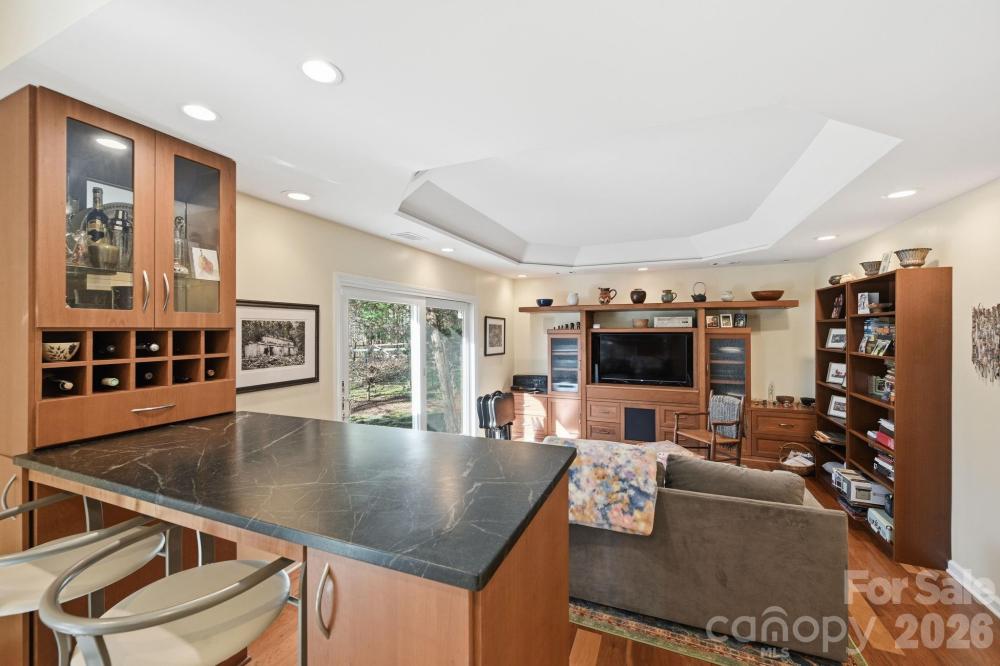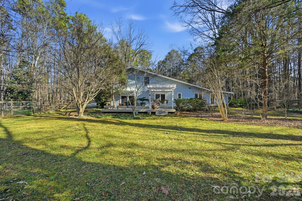 A unique opportunity to own an incredible mid-century modern home built in 1978 and brought up to more modern standards over the last 20 years. This 4-bedroom, 3.5 bath home with 2,700 SQ' of HLA is situation on a 2.89-acre lot that offers all the peace and tranquility one would expect to find in a rural setting while still being close to historic downtown and Davidson College. Bathed in natural light , the home has a wonderful guest suite on the main level while the spacious owner's retreat is located on the upper level with two other bedrooms. The majority of the house has engineered wood flooring and all the bathrooms have tile floors and shower surrounds. The main level welcomes the owners and guests into a vaulted living room with a wonderful gas fireplace. The cozy dining room is situated off the chef's kitchen which looks over the expansive backyard that is bordered by a creek that has recently been restored by Mecklenburg County's Environmental and Storm Water Service division. There is a large two-tiered deck off the rear of the house that is perfect for entertaining or quiet evenings enjoying the serenity of the large lot. The property has its own private well and septic system that have both been well maintained along with the rest of the property. The small red barn on the property has electricity and an upstairs loft that could be perfect for a studio. Don't miss out on this rare opportunity to own almost three acres so close to village center and other amenities. Welcome home.