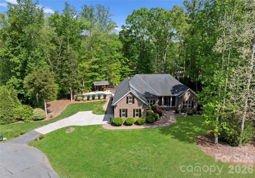 POOL + 1-Story BRICK RANCH home featuring a versatile finished room over the garage (FROG) on a level lot. This home is located in a cul-de-sec and has a fully fenced, salt-water in-ground pool with tanning ledge and bubbler. The covered cabana and palm tree will have you feeling like you are in the tropics. In the backyard get ready to entertain with firepit and patio—perfect for outdoor barbecues. Inside, the split-bedroom floorplan highlights a living room with soaring 12-foot ceilings and a main-level primary suite with an extra-large tile shower and dual shower heads. Enjoy resort-style living just 20 minutes from downtown Davidson and Mooresville, and only 40 minutes from Charlotte Airport. A must-see home for unforgettable summer days!