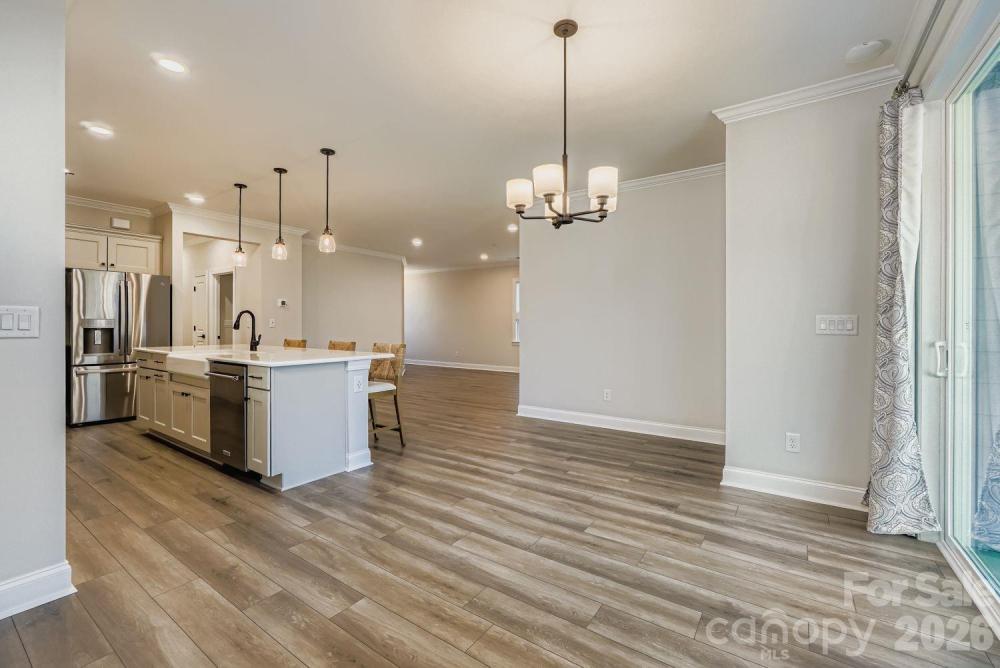 Welcome to 5562 Caneel Lane - a beautifully crafted ranch home in Trilogy Lake Norman’s exclusive 55+ resort-style community. This 2-bedroom, 2-bathroom retreat offers 1,497 square feet of thoughtfully designed single-level living, perfect for those looking to downsize without compromise. Step inside and fall in love with the sun-filled open-concept floor plan, showcasing a gourmet kitchen with quartz countertops, stainless steel appliances, custom backsplash, and a large center island ideal for entertaining. Enjoy seamless flow into the spacious living and dining areas, illuminated by abundant natural light and enhanced by timeless finishes throughout. The tranquil primary suite features a walk-in closet and a spa-like ensuite bath with dual vanities and a glass-enclosed shower. Outside, unwind on your covered patio overlooking a partially fenced yard, offering both privacy and low-maintenance ease. The 2-car garage provides ample storage, and everything inside is brand new. Just bring your bags and start enjoying the lifestyle you deserve! Located in the coveted Trilogy Lake Norman community, homeowners enjoy access to the Twin Mills Club, on-site dining, fitness center, pool, pickleball, trails, and even boating access via Freedom Boat Club on Lake Norman. This is active adult living reimagined - luxury, leisure, and connection all in one. Just minutes from Lake Norman, Charlotte, and Denver’s local shops and dining. Washer, dryer, refrigerator, bar stools, and outdoor TV convey. **Located in Denver, NC, though some GPS systems may display Stanley, NC.**
