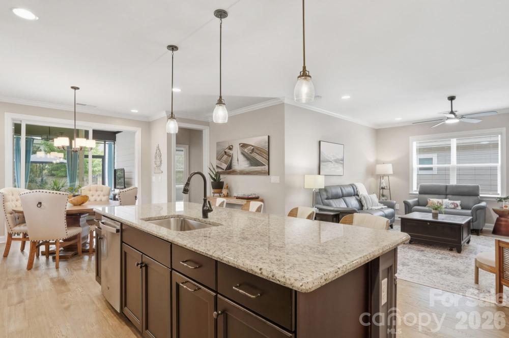 Welcome to resort-style living in the premier 55+ community of Trilogy Lake Norman! This immaculate, MOVE-IN READY 2-bedroom, 2-bath ranch home offers a highly desirable split-bedroom floor plan and an inviting open-concept design filled with natural light. The bright, airy living area flows effortlessly into the chef’s kitchen, featuring a large island with breakfast bar, ample cabinetry, pantry, and generous counter space—perfect for both everyday living and entertaining. Relax with your morning coffee or unwind in the evenings on the screened-in back porch overlooking a beautifully landscaped, private backyard that provides charm and serenity year-round. A two-car garage offers convenient parking plus excellent storage options. Enjoy world-class community amenities including Twin Mills Club, Foundry Restaurant & Bar, coffee shop, indoor and outdoor pools, fitness center, tennis and pickleball courts, pottery studio, billiards room, walking trails, and membership to Freedom Boat Club—just to name a few! This is truly a MUST-SEE home. Schedule your showing today before this opportunity slips away!
