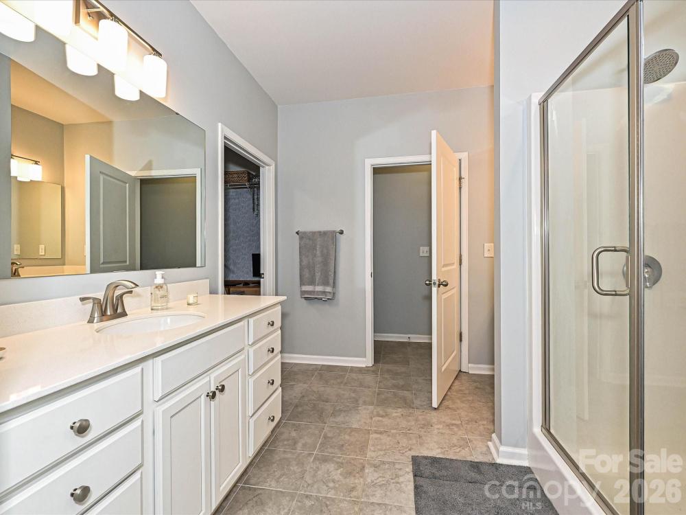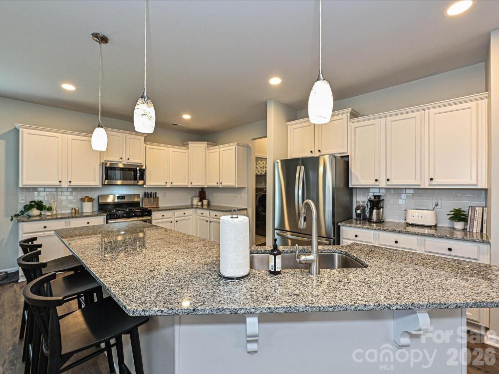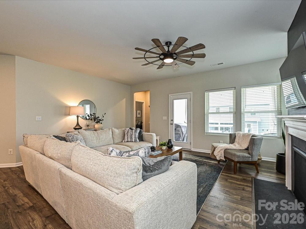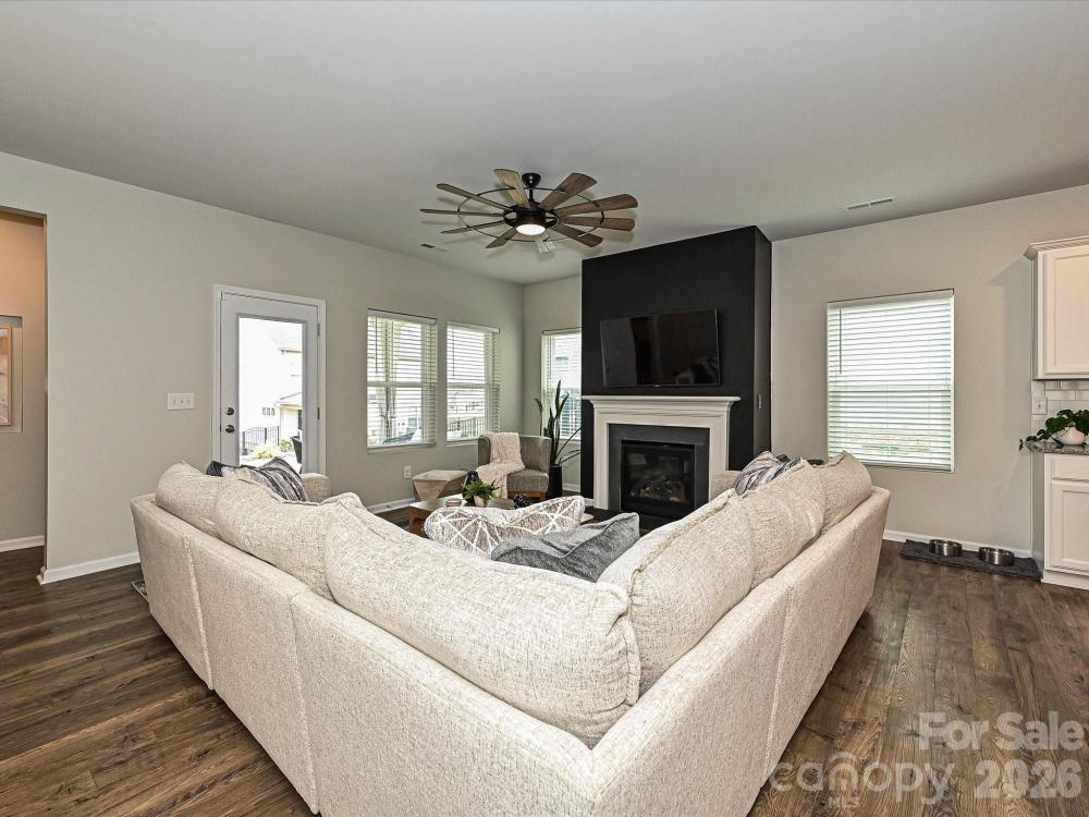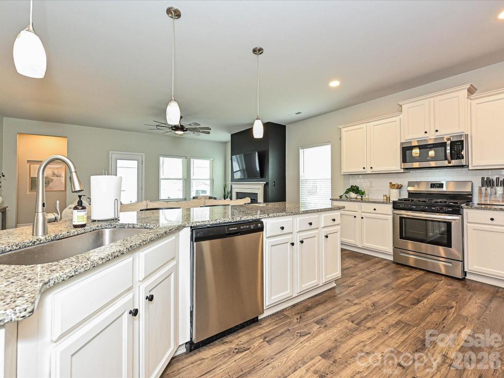 Home is move-in ready for next owner! Walking up to the home, you will notice the welcoming rocking chair front porch. Entering the home you will experience the desired open concept living. The kitchen is a dream featuring an oversized island (easily seats 4) with granite countertops and a walk-in pantry. A separate dining area flows right off the kitchen. The family room features a gorgeous fireplace and is wide open, which is great for entertaining. The covered back porch flows right off the family room. The back yard is spacious and fenced. The main level Primary Suite features two closets and a spacious on-suite bathroom. The main level also features an additional bedroom with full bathroom and a conveniently located laundry room. Upstairs there is a fantastic Bonus Room and the third bedroom and bathroom. Secondary bathrooms feature new tile flooring. Ring security system stays with the house. Community pool is located right down the street!