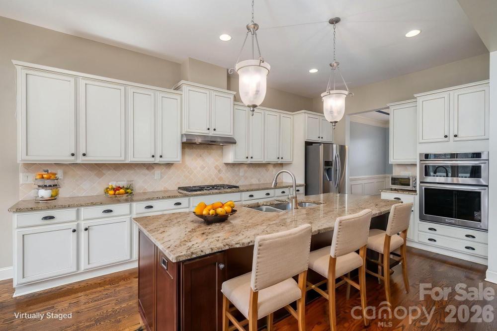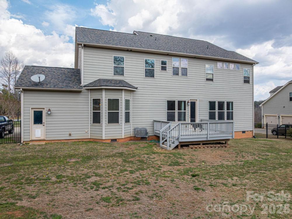 This beautiful home boasts many architectural features including 10ft ceilings on the main level, 9ft upper; coffered ceiling in the Living Room, tray in the Dining Room and primary Bedroom, crown moldings & chair rails. There are quality hardwood floors throughout the main level except the full bath. If you love natural light, the windows and doors create that connection with nature. With 4.5 baths, all 5 Bedrooms have bath access, 2 share a Jack'n'Jill suite, and a powder room for guests is on the main level. The spacious kitchen features a gas cooktop, convection oven & microwave, plenty of granite countertop space and undermount sink. While there are ample kitchen cabinets, the walk-in pantry provides awesome storage space. The living room, kitchen and breakfast area make family gatherings and entertaining casual. Add ambience with a gas log fireplace. Yet a formal dining room allows for special occasions. The upper level Den has lots of options for casual enjoyment. The Laundry Room is conveniently located on the upper level and features a utility sink. Need an office or music room? Got it! French doors keep it bright but private. Got kids, pets? The back yard is fenced allowing for a secure play area. But the Clubhouse, outdoor pool, and play area are also great options for sun and fun, just a short walk away! Not only is there a 2 car garage, but an additional 1 car garage is perfect for outdoor toys, tools or hobbies. The location of this home allows for easy access to HWY 16 for a commute to Charlotte or the Hickory area as well a shopping, schools and medical options in the local area. If you're looking for lots for square footage, priced right, and convenient travel, don't miss this one! Well designed and maintained!!