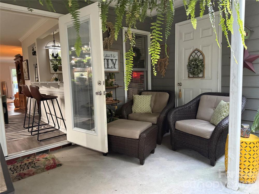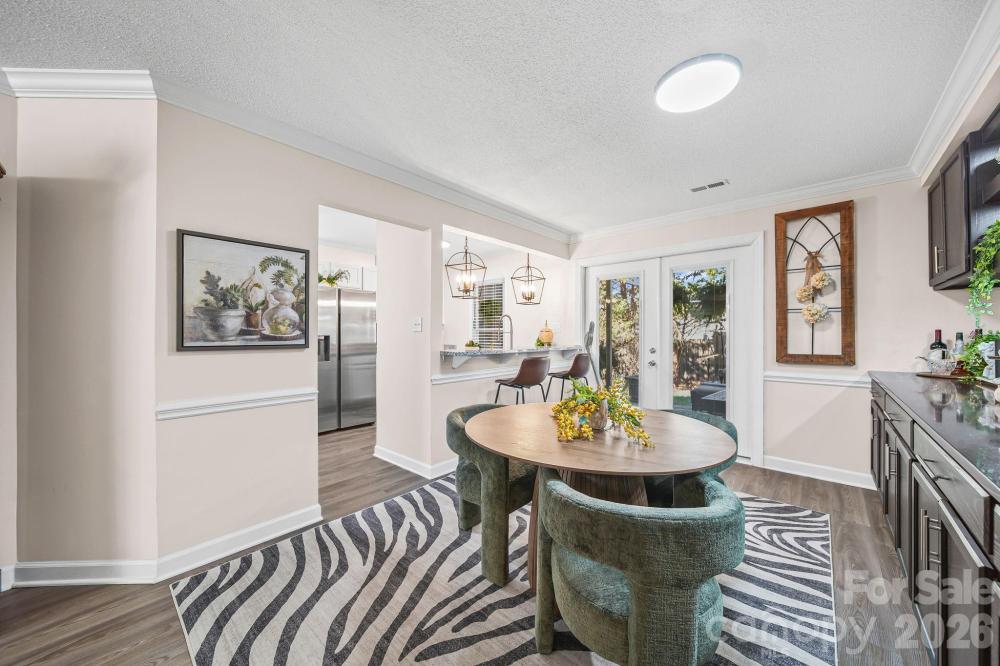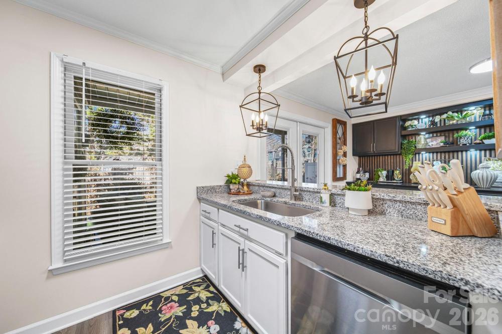 Experience the perfect blend of style and comfort in this beautiful end-unit condominium, conveniently located to offer the best of Gastonia living and easy access to I-85. As an end unit, this home offers an added level of privacy and natural light that interior units can't match. Step inside to find a bright, open interior elevated by many updates and features: LVP flooring, sleek granite countertops, updated light fixtures, stainless steel appliances.The dining area is anchored by stunning, custom built-ins, providing both a focal point for gatherings and sophisticated storage solutions. Open the french doors to step onto the covered back patio, the perfect spot for your morning coffee or a quiet evening with a glass of wine. Whether you are a first-time homebuyer, a busy professional, or looking to downsize without compromising on quality, this home delivers a turnkey lifestyle in a prime location.