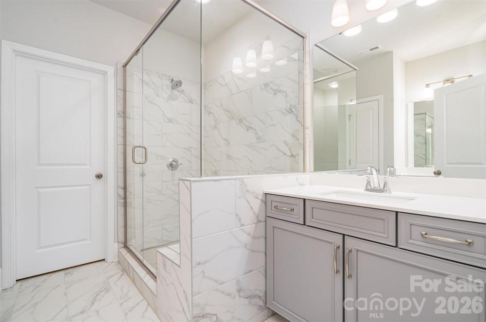 One of the final end-unit opportunities at The Villas at Tucker’s Walk. The Merlot stands out immediately with its highly desirable covered porch-over-porch design. This 2-story townhome offers a rare primary suite on the main level, combining everyday convenience with architectural character you won’t find in most new construction townhomes. As an end unit, enjoy additional natural light and added privacy. With 3 bedrooms and 2.5 baths, the open-concept main level features 9-foot ceilings and a gourmet kitchen with wall oven, cooktop, granite countertops, tile backsplash, and a large island that flows seamlessly into the living and dining areas. The primary suite includes a tiled shower and convenient walk-through access to the laundry room. Upstairs, two secondary bedrooms and a spacious loft provide flexibility for guests, a home office, or a second living area. The second covered porch off the upper bedroom creates the perfect space for morning coffee or evening relaxation, a feature buyers consistently love. Lawn care and exterior maintenance are included in the HOA for easy, low-maintenance living. Located at Poplar Tent Road & Harris Road in the highly sought-after Cox Mill High School district. Rear-load 2-car garage. Dual-zone Lennox HVAC. 50-gallon energy-efficient gas water heater. 2-10 Home Warranty included. Construction is underway — secure your home now and personalize your interior selections. Estimated completion August 2026. Photos are representative.
