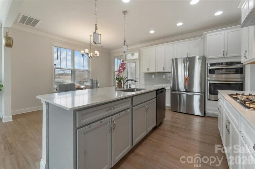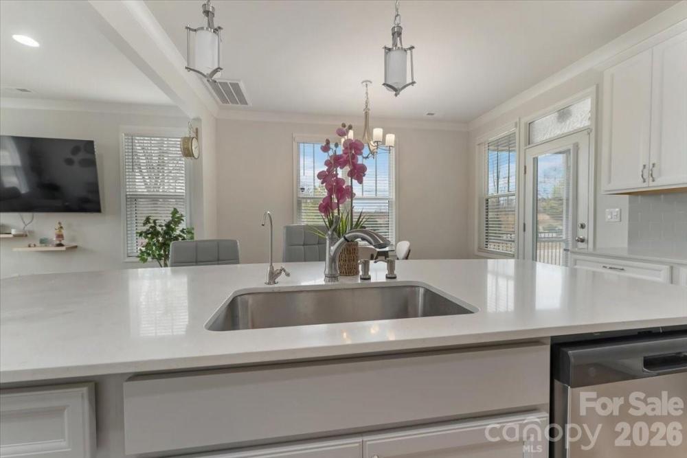 Welcome to this stunning Move-in ready end-unit townhome perfectly positioned in the charming Villas at Tucker's Walk. Located in a prime spot with access to top-rated Cabarrus county schools. This prime end-unit enjoys an exceptional position, boasting serene pond views right from your windows and the added convenience of extra parking spaces - perfect for guests or everyday ease. Step inside to an inviting open floorplan flooded with natural light, featuring a seamless flow between the living, dining and kitchen areas - ideal for entertaining or everyday comfort. The gourmet kitchen boasts modern cabinetry, ample counter space, stainless steel appliances and a convenient island. Upstairs, the luxurious, most spacious primary suite boasts upgraded private en-suite bath, 2 walk-in closets. Also two spacious additional bedrooms and another full bath for family or guests. A convenient laundry area completes the upper level. Thoughtful upgrades throughout the house, also, extra additions such as a water conditioning & filtering system for the whole house, dedicated storage racks in the garage, internal & external security devices, screened porch to enjoy your backyard, built-in closet units in the primary closets are a few to list. Just minutes from Birkdale village, Concord Mills mall shopping/dining, Lake Norman access, quick access to I-77, I-85 & 485 for easy commute anywhere. Great location and so much future growth potential. Don't miss it!