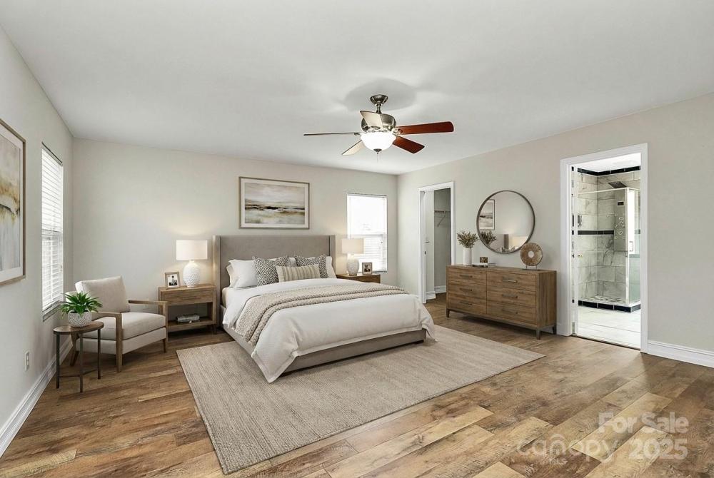 Discover this beautifully updated, turnkey home in one of Cabarrus County’s top-rated school zones! Step inside to find stunning wood floors flowing throughout both levels, complemented by fresh paint and thoughtful upgrades at every turn. The gourmet kitchen features quartz countertops, stainless steel appliances, a stylish tile backsplash, deep single-basin sink, soft-close cabinetry, and a walk-in pantry—perfect for everyday living and entertaining. A convenient guest bedroom is located on the main floor, while the primary suite offers a generous walk-in closet and updated bathroom finishes. Additional highlights include a bonus room, upgraded bathrooms, Nest thermostat, architectural shingle roof, and Trane HVAC for peace of mind. Enjoy outdoor living on the extended patio with pergola, overlooking the fenced, flatbackyard—ideal for relaxing or hosting. Located in a rent-friendly neighborhood with fantastic amenities including a pool and playground. Close to shopping, dining, interstate access, and everything you need. Truly move-in ready!