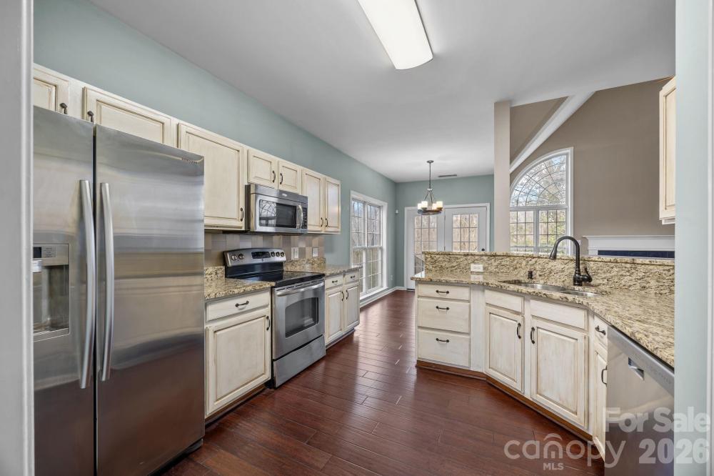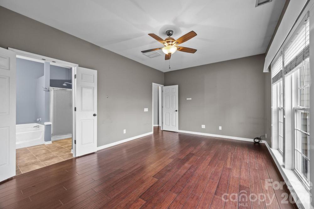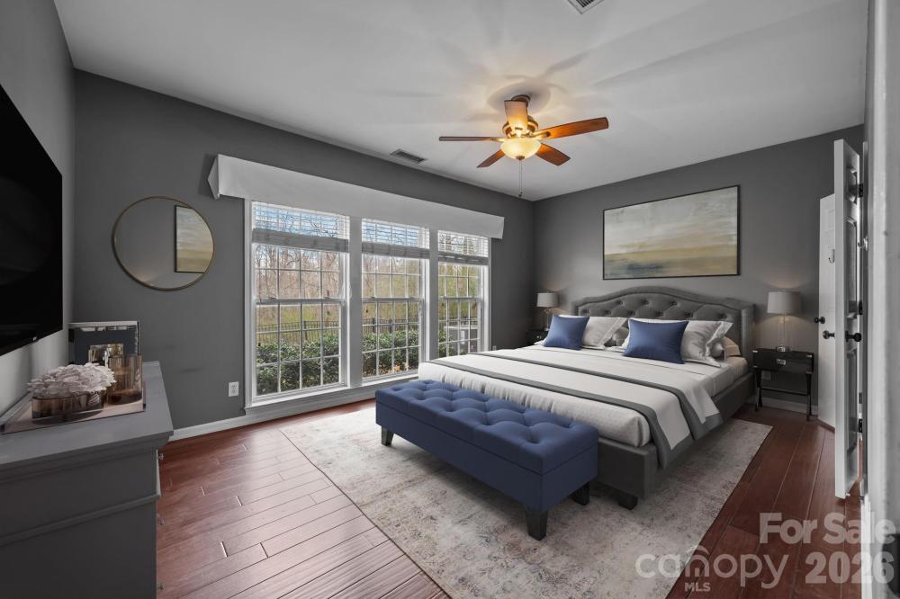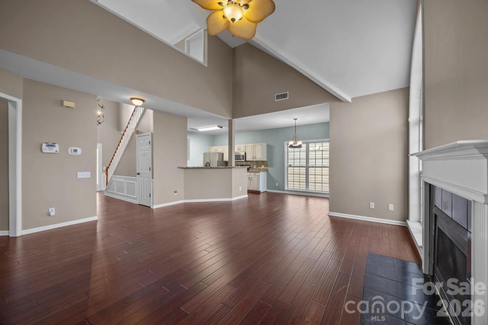 Primary on Main with Fenced Yard in the Heart of Huntersville! Welcome to Melbourne! Located in the heart of Huntersville, this stunning 4-bedroom, 2.5-bath home offers nearly 2,000 sq. ft. of comfortable living space. Step inside to find engineered hardwood floors flowing throughout the main level. The desirable Primary Suite is conveniently located on the main floor and features a spacious walk-in closet and a refreshingly updated bathroom with a brand-new dual sink vanity. The living room, anchored by a cozy gas-log fireplace, flows easily into the kitchen—perfect for entertaining. Upstairs, you’ll find secondary bedrooms and a massive bonus room (or 4th bedroom) that offers endless possibilities for a media room, home office, or hobby space. Step outside to your private oasis: a fully fenced backyard with a patio ready for grilling and relaxing. The Melbourne subdivision is renowned for its incredible amenities, including an inground pool, picnic area, playground, basketball area and tennis courts, pickleball, and easy access to walking trails. Refrigerator, washer, and dryer convey with the home!