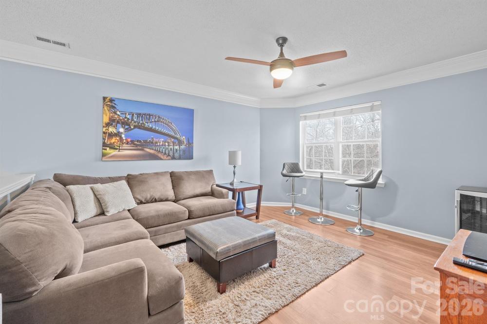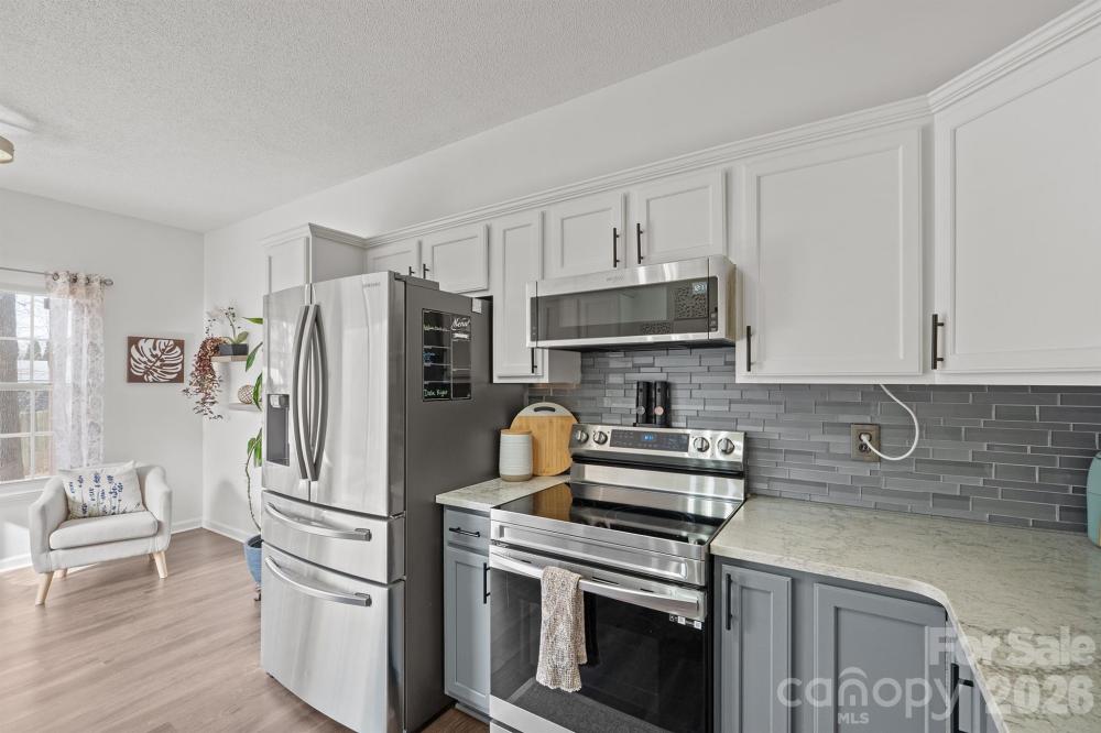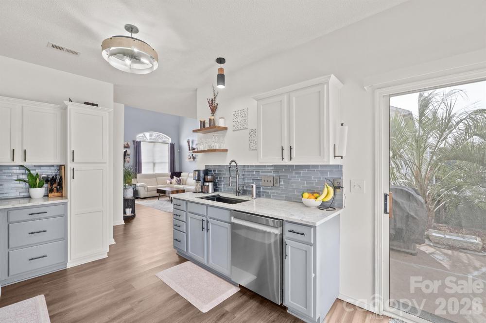Gorgeous Melbourne home in a prime, walkable Huntersville location—just steps to shopping, dining, the Torrence Creek Greenway, and "The Park" (Huntersville’s premier business center). The Primary Suite on the Main Level anchors this open and bright floor plan, highlighted by arched transom windows and a loft overlooking the Great Room. The updated kitchen features quartz countertops, stainless steel appliances, soft-close doors, glass mosaic backsplash, designer lighting, and undermount sink. LVP flooring spans the main level, and the spacious primary suite offers an updated bath with dual quartz vanity, garden tub and separate shower. Oversized secondary bedrooms—including one with a large walk-in closet, and excellent storage throughout. Upgrades include wainscoting and upgraded trim, stylish wood stair treads/railings/balusters, designer lighting, motorized window shade in Primary, a newer roof (2020), and security system. Outdoor living shines with a large deck, porch swing, fire pit, privacy fencing and fruit trees. Amazing Recreation Center, Club House and activities in Melbourne including Outdoor Pool, Pickleball/Tennis, Picnic Area, Playground and multiple access points to Greenway (more info at https://melbournehoa.org/). 13415 McCoy Road delivers a rare blend of walkability, thoughtful updates, and everyday livability - Welcome Home!