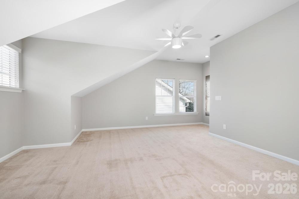 Rare, primary on main home in sought after Centennial Park neighborhood. Well maintained story and a half with top notch curb appeal and large covered front porch overlooking common area green space. Come inside where the foyer welcomes you to the practical split floor plan. The functional kitchen layout, with bar seating and eat in area, provides flexibility to use the well-lit front room, featuring custom blinds, for dining or set up as office space. Two bedrooms and a full bath are placed on one corner of the floor plan, with the primary bed and bath on the opposite corner. The large primary bedroom features a big sitting area with lots of windows and light to enjoy the private back yard. In the beautiful updated primary bath, you will find high end finishes and central vac system that serves it and the large walk-in closet. Upstairs you will find the bonus room with endless possibilities. The large space, with common area views can be used as an office, second living room, work out room, or set up as a 4th bedroom. The home features a 3-zone HVAC system with 3 Ecobee thermostats for efficiency. There is plenty of room for parking in the extra wide driveway and 2 car garage with smart tech opener for easy access. This super clean home is ready for you. A one-year home warranty is included!