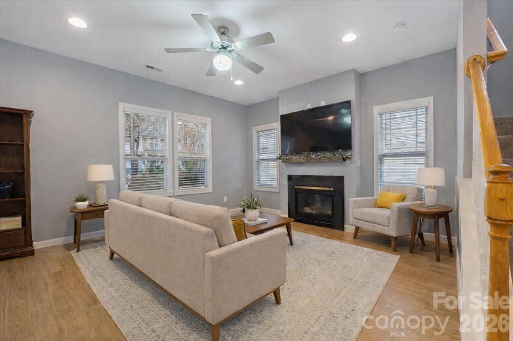 Beautifully updated and move-in ready home in an established Huntersville neighborhood. The upper-level Primary Suite is the standout, recently remodeled with a luxurious spa-inspired bath featuring a huge, tiled shower with glass enclosure, dual vanities, updated mirrors and lighting, and a built-in Bluetooth shower speaker for a personalized, relaxing experience. A custom walk-in closet offers abundant shelving and storage for shoes, bags, and wardrobe essentials, complemented by an additional closet with a new organization system to maximize space. Fresh interior paint, newer carpet and updated porcelain tile on the main level create a bright, modern feel throughout. The sun-filled kitchen sits at the rear of the home for convenient access from the detached 2-car garage—ideal for unloading groceries. A spacious breakfast bar provides additional seating and a natural gathering spot, and the kitchen’s open connection to the dining area and great room makes everyday living and entertaining feel seamless. The open floor plan continues with a light-filled dining area that flows into the spacious great room anchored by a cozy fireplace. Two generous secondary bedrooms with ample closets and a full bath complete the upper level. Situated on a desirable corner lot, this home offers a great outdoor area and convenient access to shopping, dining, and I-77.