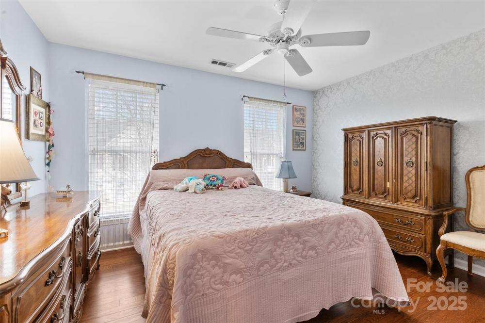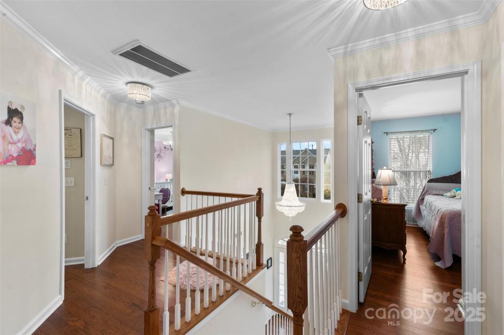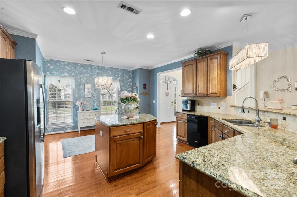 Welcome to this beautiful home. Its rocking-chair front porch leads into a warm and welcoming entryway. The spacious kitchen has granite countertops, designer tile backsplash, a large center island, and stainless steel appliances. The kitchen opens to a comfortable living room and adjacent sitting room featuring a gas fireplace — ideal for casual entertaining and relaxing evenings at home. The formal dining room is adorned with elegant moldings and a bay window — perfect for hosting meals and gatherings.The primary suite on the second floor offers dual sinks, separate shower, soaking tub, and generous closet space. Three additional well-sized bedrooms complete the upper level. The home includes an updated laundry room, renovated kitchen pantry, and enhanced closet systems for improved storage and organization. Hardwood floors extend throughout most of the home. The HVAC system was replaced in 2016 and includes a lifetime warranty. The roof is 2021. A side-load two-car garage with overhead storage and rear deck complete the home. The property sits on level lot backing to open farmland, providing peaceful views and added privacy. The Gilead Ridge community offers excellent access to local conveniences and a variety of community amenities including a pool, clubhouse, and playground, with close proximity to shopping, dining, Lake Norman, and Birkdale Village. If you’re seeking a turnkey home in a well-established neighborhood with stylish finishes, practical upgrades, and a private backyard setting, this property offers a compelling opportunity with four bedrooms and a flexible layout.