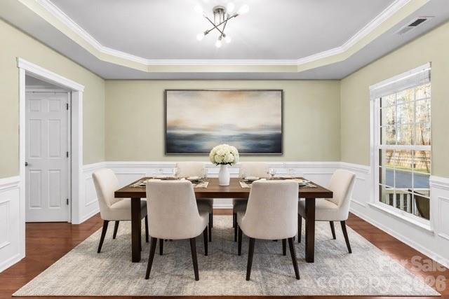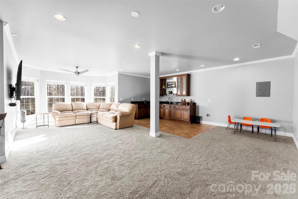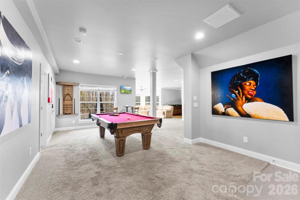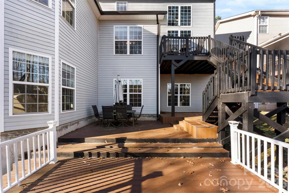 Spacious colonial located in the highly sought after city of Huntersville. This home features nearly 5,000 sq ft with 5 bedrooms, 5 full Baths, and a fully finished basement! Tons of room for all of your needs. Primary suite on main level along with a 2-story great room opened to the kitchen and breakfast area. Attractive dining room and living room/study. 3 additional bedrooms, 2 full baths and a huge flex room on upper level. Basement has kitchen area, bedroom and full bath along with numerous areas/rooms for sitting, eating, games, media and exercise options. Covered rocking chair front porch and spacious tiered decks in rear. Private lot with trees behind. Located in Carrington Ridge with community pool, playground and green spaces. Close to Birkdale Village shopping and dining, Lake Norman schools and an easy drive into Uptown Charlotte. Schedule your showing today!
