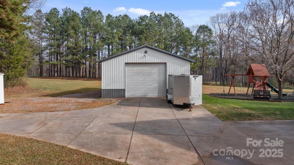 Rare opportunity to find a gorgeous custom built four-bedroom, three bath home in a rural setting just minutes to Huntersville, Concord, and Charlotte. Located in the Town of Huntersville ETJ, this home boasts a large footprint on 2.3 acres of land. The main living area hosts the kitchen, two bedrooms, two baths, formal dining area and cozy fireplace in the main living room. Upstairs the bonus room has been finished for a playroom and has two beds and one bath. The updates to the home are immense. The owners encapsulated the crawl space, installed two new HVAC units in 2022, a saltwater pool and BBQ area installed in 2023, which are all permitted, and a fenced in back yard with playground. A rare find in this area for the quiet appeal of the neighborhood with city amenities minutes away. Outside there is a large workshop, 30x50 with concrete and insulation. It offers ample room for storage or a workshop. There is also an additional 12x24 outbuilding for additional storage.