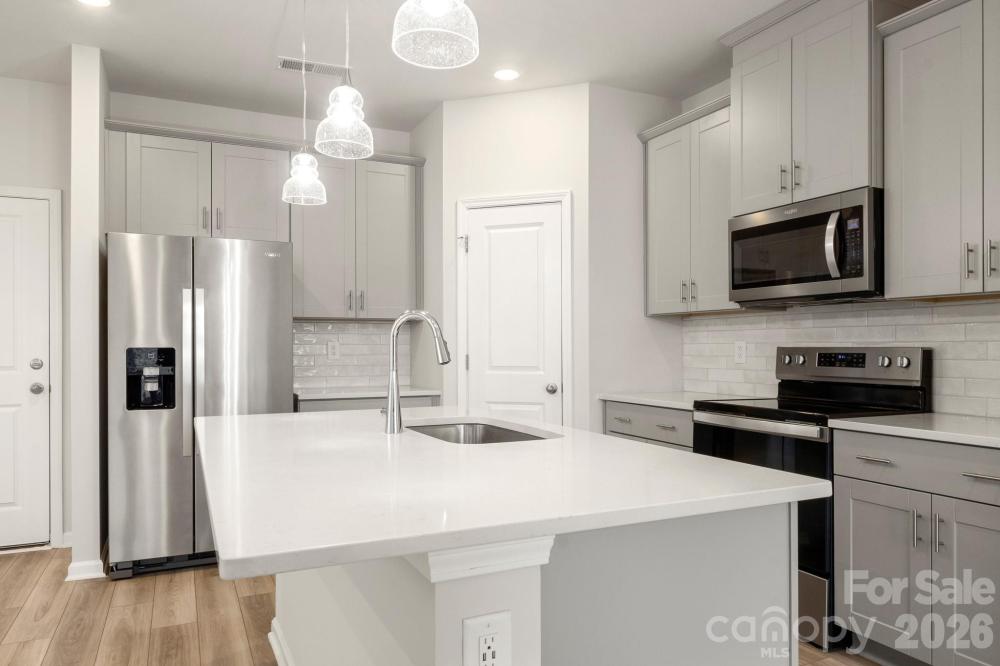 CUTE End Unit Townhome refreshed and ready for you! Walk into the unit onto LVP flooring throughout the entire first floor! The Foyer entry will bring you right into the heart of the home, the kitchen! Here you will find a pantry, STUNNING custom cabinetry and tile backsplash, Island w/bar seating, and SS Appliances! Entertain guests at the dining area or Great Room, both conveniently located close by thanks to the OPEN floorplan! UP: Upstairs, you will find more room for entertaining or an office space in the roomy loft that hosts plush carpeting, as does all the bedrooms! The Primary Suite is AWESOME - big in size, large walk-in closet, and full bathroom w/dual vanity, and walk-in shower! The additional bedrooms are ample in size and share the additional bathroom w/ single vanity and tub/shower combo. Laundry Room is also upstairs. Small Patio and Storage Unit outside. Come make this townhome your home today!