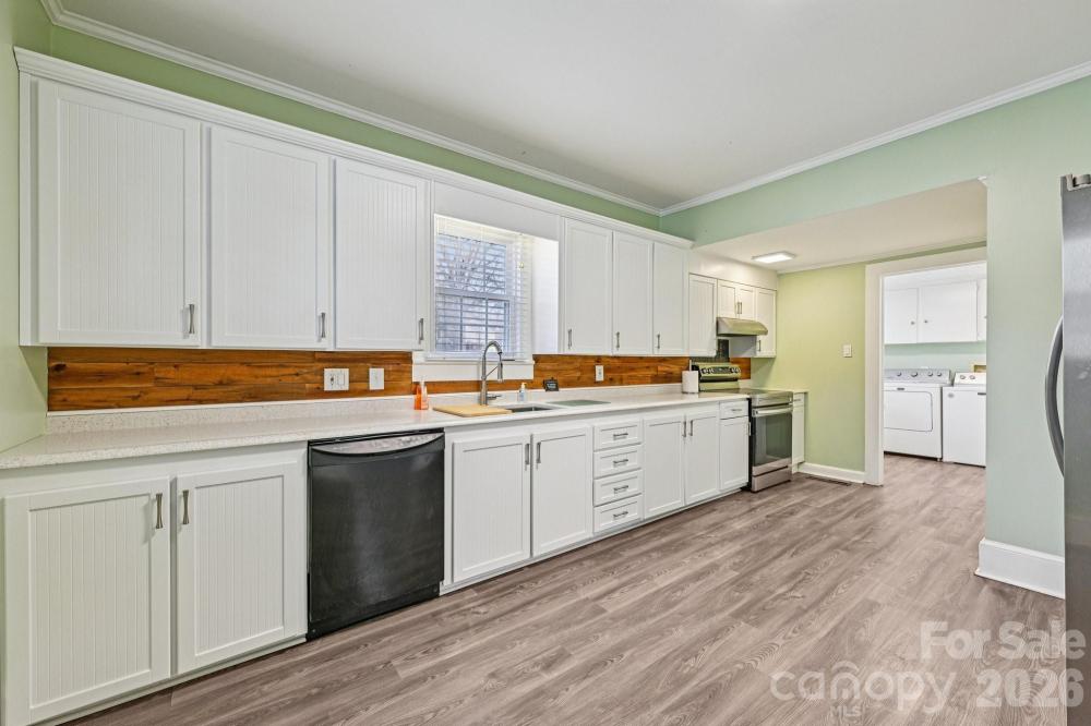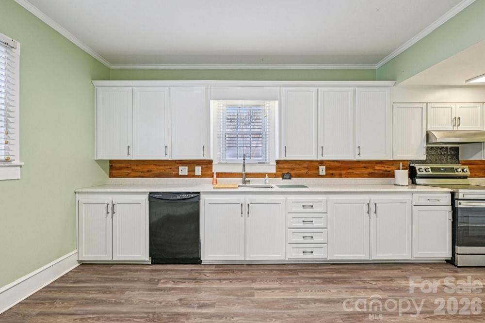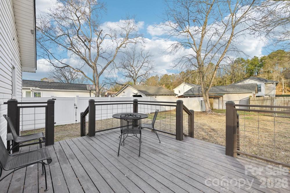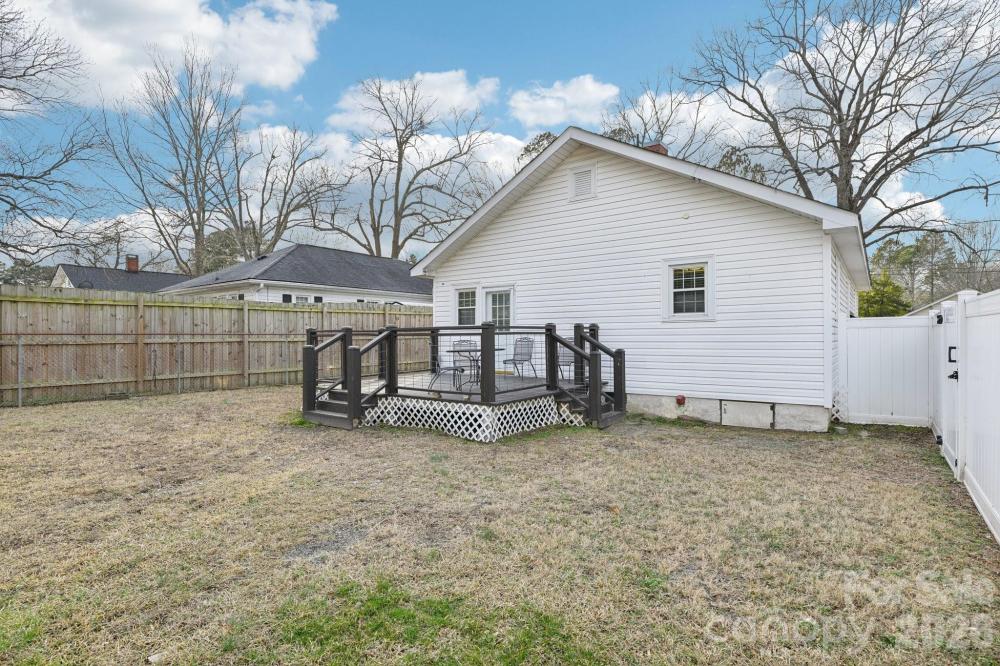 This well-maintained single-family ranch offers easy one-level living with two bedrooms and one full bathroom, designed for both comfort and functionality. Inside, durable vinyl plank flooring flows throughout, creating a modern, low-maintenance feel that complements any style. The large kitchen is a standout feature with matching appliances, generous prep space, and a sink positioned to overlook the fully fenced backyard—ideal for entertaining, pets, or play. Enjoy relaxing mornings on the front porch and evenings on the back deck with direct access to the private outdoor space. The fenced-in backyard provides room to unwind or host gatherings. A shared gravel driveway adds accessibility without compromising usability. Located within walking distance to Kannapolis Village Park, Kannapolis Cannon Ballers Stadium, and the North Carolina Research Campus, this home places you in the heart of the action with easy access to dining, entertainment, and the vibrant social district. With its thoughtful layout, inviting outdoor areas, and prime location, this ranch-style home delivers both lifestyle and livability in a highly desirable setting. The community also features a playground and recreation area.