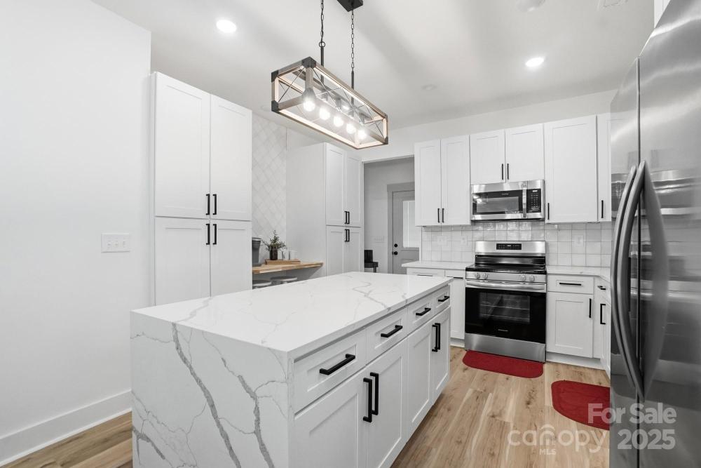 Welcome to this beautiful 3-bedroom, 2-bath home built in 2024, offering modern comfort and thoughtful design throughout. Step inside to an inviting open-concept layout that seamlessly blends the living, dining, and kitchen areas—perfect for both everyday living and entertaining. The kitchen features a custom tile backsplash, waterfall island, and plenty of cabinet space, giving you both style and functionality. Enjoy relaxation year-round with a screened-in back porch, ideal for morning coffee or evening gatherings. The covered front porch with ramp access adds convenience and accessibility for all. A dedicated oversized laundry room provides additional storage and workspace, making household tasks a breeze. The cozy electric fireplace adds warmth and ambiance to the main living area. This home also includes a transferable home warranty for added peace of mind. Located just minutes from downtown Kannapolis, you’ll have quick access to shopping, dining, and entertainment while enjoying the comfort of a newly built, move-in-ready home.
