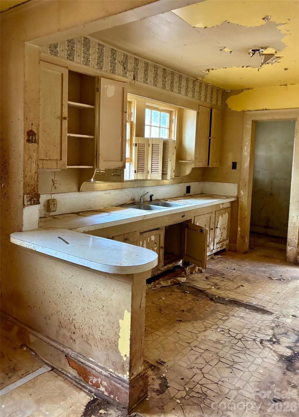 Premier 4.17 acre lot surrounded with mature trees and 400 ft of road frontage on Mooresville Rd. Desirable location within 3 minutes of downtown Kannapolis. 1939 Brick Ranch with inviting porch with arches. Home is not suitable for occupancy in its current condition. Home is selling "As Is". List price reflects the value of the land. There is an interior staircase leading to a cellar with a concrete floor. This property possesses potential for future development.