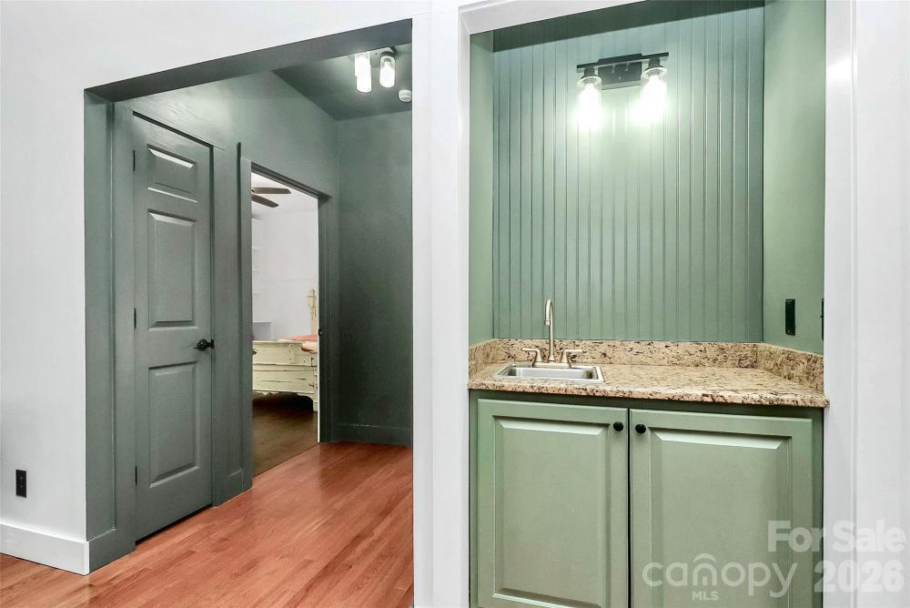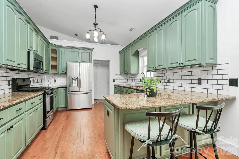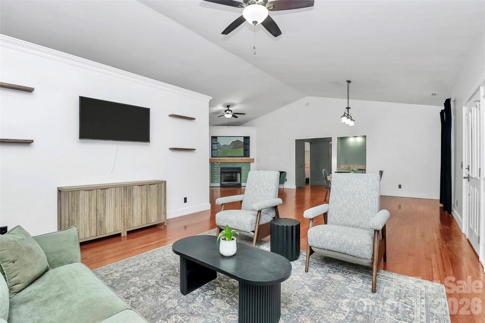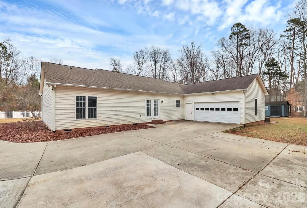 Tucked among mature trees yet conveniently close to the city, this beautifully maintained ranch home offers the perfect blend of privacy, comfort, and accessibility—with easy access to I-85. A welcoming Southern-style front porch sets the tone, inviting you to relax and enjoy the peaceful setting. Inside, a bright and open floor plan showcases hardwood floors throughout the main living areas, vaulted ceilings, and seamless flow between the living room, dining room, and keeping room—ideal for both everyday living and entertaining. The upgraded kitchen features granite countertops, custom cabinetry, stainless steel appliances, under-cabinet lighting, and thoughtful finishes that make it as functional as it is stylish. The split-bedroom layout provides added privacy, with a spacious primary suite highlighted by coffered ceilings, dual walk-in closets, and a recently remodeled deluxe bathroom complete with a separate shower and soaking whirlpool tub. Secondary bedrooms offer generous closet space, and recent updates include a remodeled guest bathroom and a versatile guest room with custom built-ins. This home has been carefully updated over the years, including a remodeled kitchen, new HVAC system, updated bathrooms, new carpeting, and a crawlspace with a vapor barrier—offering peace of mind along with comfort. A rear-load two-car garage completes the package. A must-see home that combines an open layout, modern updates, and a serene setting just minutes from everyday conveniences.