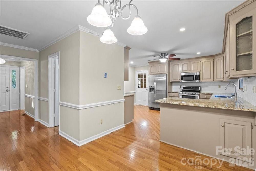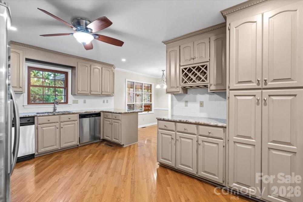 Welcome to 1061 Fairway Drive, a beautiful brick ranch set on a private 1.76-acre lot in Kannapolis, North Carolina, just across from Irish Creek Country Club. Built in 1990 with numerous updates, this spacious home offers approximately 3,851 square feet of refined living space that blends comfort, style, and functionality. While the home is officially listed as a 3-bedroom property per the septic permit, it features a fourth room with a closet and window that fully functions as a bedroom—offering valuable flexibility for guests, extended family, or a home office. A welcoming foyer opens into a bright, open-concept living area with hardwood floors, crown molding, and large windows that fill the space with natural light. The layout flows seamlessly into the dining area and gourmet kitchen, complete with granite countertops, stainless steel appliances, custom cabinetry, and a charming breakfast nook—ideal for both everyday living and entertaining. The primary suite serves as a private retreat with a walk-in closet and spa-inspired bath featuring dual vanities, a jetted tub, and an updated shower. Two additional bedrooms are located on the main level, while the finished basement includes the versatile fourth room (with closet and window), along with a cozy wood-burning fireplace, half bath, and additional flexible living space perfect for a media room, recreation area, or fitness studio. The lower level also offers a garage/workshop that opens directly to the backyard. Outside, the 1.76-acre lot provides privacy and endless possibilities for outdoor living, complemented by a large screened-in porch with a ceiling fan and electrical outlets. A private driveway and attached two-car garage complete the home’s impressive curb appeal. Combining nearly 4,000 square feet of living space with the flexibility of a functional fourth bedroom option, 1061 Fairway Drive offers exceptional versatility, space, and value in a desirable location.