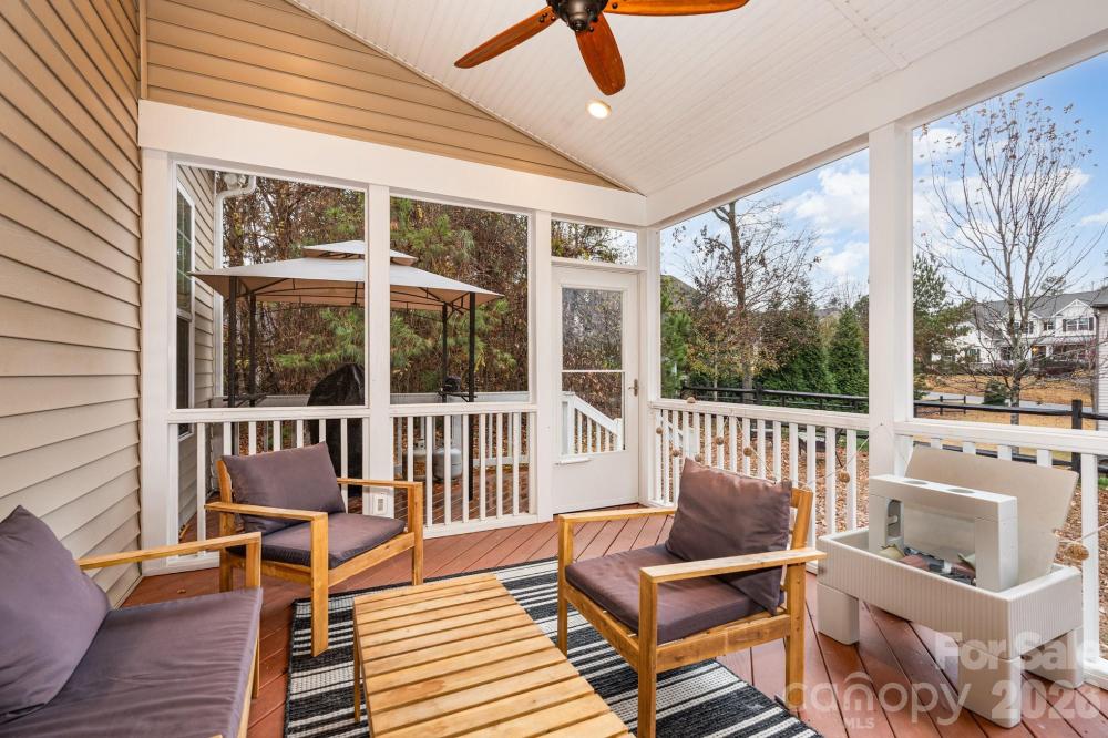 Welcome!! This gorgeous home has 4 spacious bedrooms, 2 full bathrooms, plus a 2-car garage, and is situated on a low traffic cul-de-sac road. Split floor plan with primary bedroom on main level offers hardwood flooring, formal dining room, a generous living room, and chef's kitchen, complete with gas range, granite counter tops, double ovens and ample storage. You're sure to enjoy the vaulted sunroom, perfect for a relaxing evening! And the screened porch is perfect for entertaining guests and friends! Maintaining a luscious lawn is made easy with the 5-zone irrigation system. Microwave, dishwasher, and kitchen range were purchased in July 2025. The HVAC was replaced in 2023. Kitchen and garage refrigerators will convey. Shelves in living room, entry sconce lights, and storage racks in garage will not convey. HOA has a community pool and the option for boat storage. Washer and dryer will convey. Please call listing agent with any additional questions.