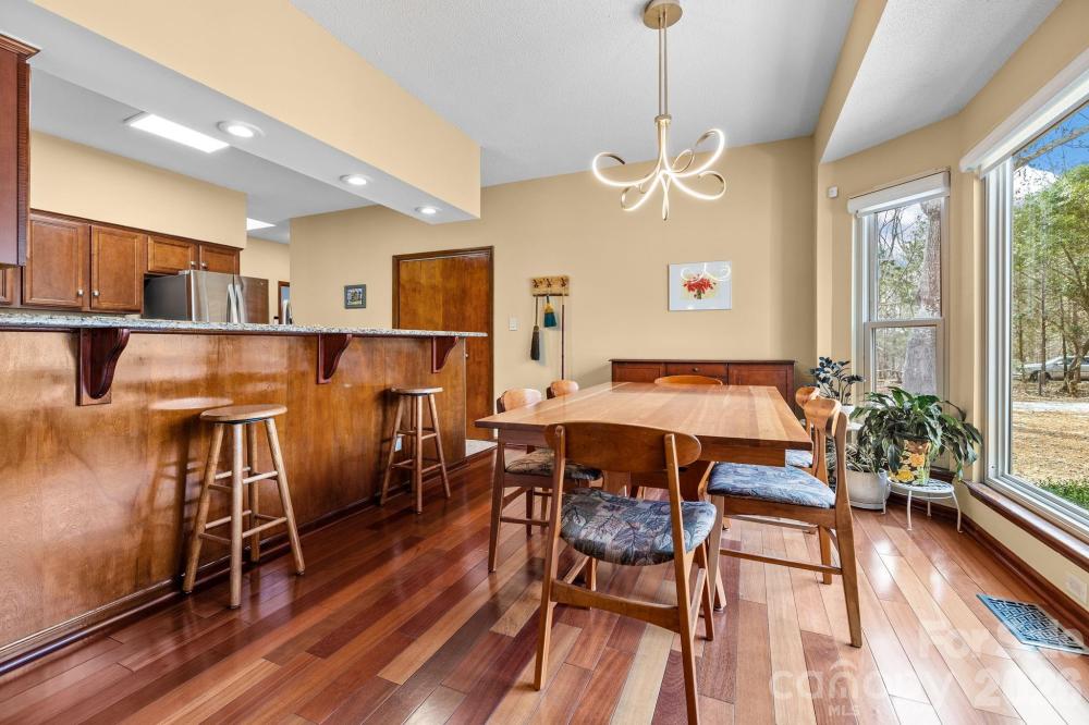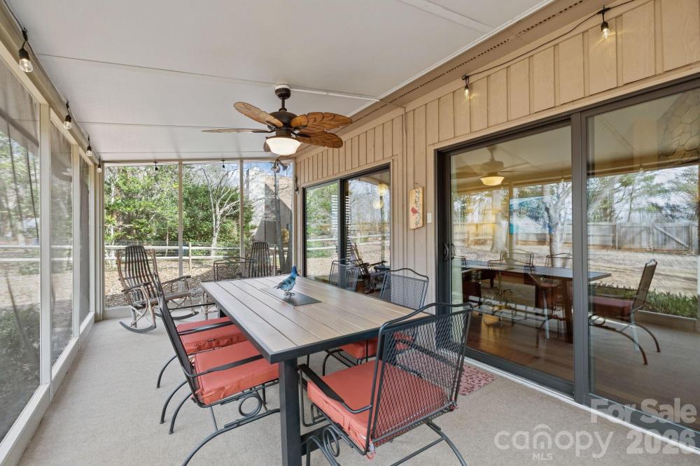 Spacious ranch retreat privately positioned at the end of a quiet, no-through street bordering protected natural land and McDowell Nature Preserve. This one-of-a-kind home features Brazilian cherry hardwood floors throughout main living areas and bedrooms (no carpet), vaulted ceilings, and a dramatic floor-to-ceiling stone fireplace. The kitchen offers granite countertops, stainless steel appliances, tile backsplash, and generous storage. A sunken great room opens to a large screened porch, perfect for indoor-outdoor living and enjoying wooded views and abundant wildlife. Split bedroom plan with a king-size primary suite featuring a spa-like bath. Established neighborhood with no HOA. Easy access to Long Cove Marina.