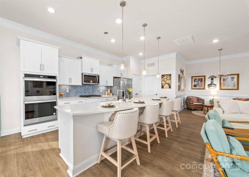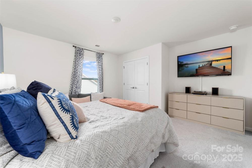 MODEL HOME built by DR Horton has only been lived in a few months! The Azalea model is an entertainer's delight with this spacious open floorplan. The gourmet kitchen boasts an exceptionally large kitchen island bar that can seat multiple people comfortably, stainless steel appliances, double wall ovens, quartz countertops, designer backsplash and an abundance of kitchen cabinets and counter space. The primary suite features an en-suite bathroom with an oversized walk in closet, separate water closet, dual vanities, shower with ledge. Two additional bedrooms are conveniently located near each other and share a full size bathroom. The upper level offers a loft area and a full bedroom and full bath. The sunsets are magnificent in this neighborhood and you will enjoy the stunning sunset views from the covered rear porch and paved patio area connected to the porch. Additional outside features are a built in grill, irrigation system in the front, rear and side yards, professional landscaping in the front, rear and side yards, fescue grass and extended parking in driveway. RESORT STYLE LIVING in The Vineyards on Lake Wylie include - 2 outdoor pools, community dock, community boat ramp, community paddle board/kayak launch, walking trails, playground, dog park, tennis, pickle ball, bocce ball, covered picnic shelter, club house (new club house is being built next to the pools and is scheduled for completion by mid 2026) There is a waiting list for boat storage and some boat slips are offered for resale periodically by private owners. Awesome location with close proximity to the newly developed River District, Whitewater Center, Charlotte's International Airport, Uptown and the quaint town of Belmont.