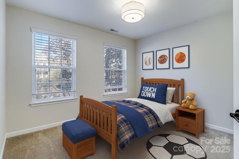 Welcome to the perfect blend of space, comfort and convenience in this beautifully appointed home. Top school district, affordable taxes, tucked in quiet cul-de-sac with seasonal water view of Lake Wylie. This property delivers both privacy and proximity to everything you need. Step inside to a warm and inviting entry where main floor offers an office with french doors, dining room perfect for hosting. A cozy living room centered with a stacked stone that is open to the kitchen, just in time for the holidays! A bright & sunny flex space/sunroom offers endless possibilities - playroom, gym, etc. The spacious kitchen opens seamlessly to all, making everyday living and entertaining effortless. Upstairs you'll find large secondary bedrooms and a generous primary suite. The 3rd floor bedroom/bonus provides even more flexibility - ideal for teens, media room, guests or private retreat. Outside, enjoy a private backyard with a water view of Lake Wylie - all in a desirable cul-de-sac setting. Community offers lake access for your personal watercraft, picnic area and playground.