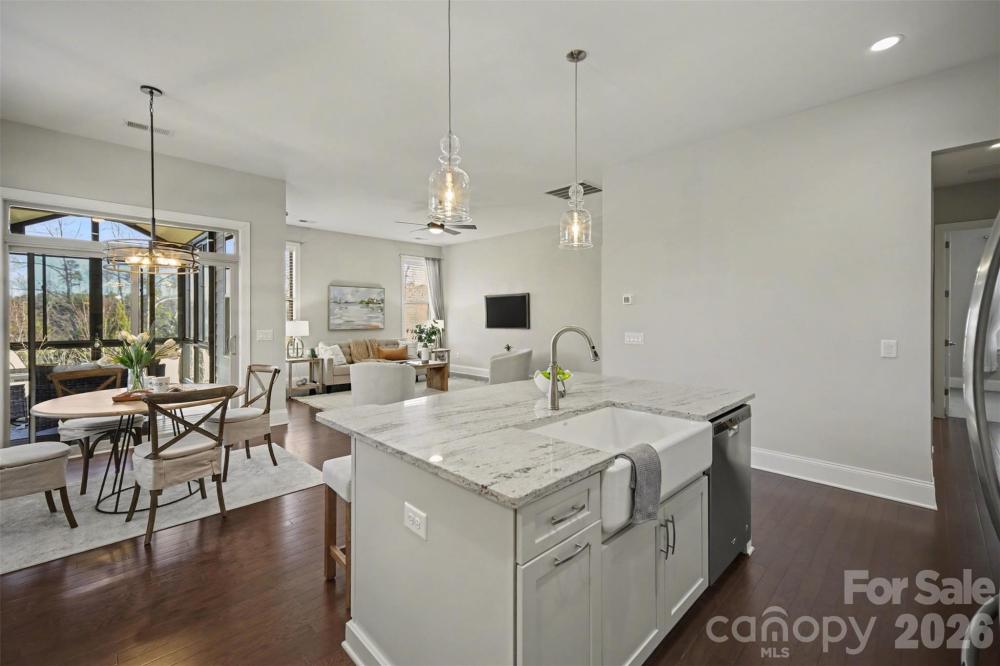 Experience the pinnacle of one-level living in this exceptional ranch at Regency at Palisades! Positioned on a premier lot that backs to a lush natural area, this property offers a rare level of privacy and a peaceful, wooded backdrop that creates a true personal sanctuary. The layout centers around a chef-inspired kitchen featuring a large center island that serves as both a culinary workspace and a natural gathering spot for guests. Sophisticated upgrades continue through luxuriously updated bathrooms, designed with modern fixtures. The primary suite offers a refined retreat, boasting an expansive walk-in closet with ample room for any wardrobe. The interior flows seamlessly into a stunning, light-filled sun porch—a bright and airy space perfect for enjoying an indoor-outdoor feel year-round. Beyond the main floor, an expansive unfinished basement provides incredible versatility, offering a blank canvas for a custom home gym, private workshop, or future recreation suite. The lower level is also pre-plumbed, offering a seamless head start for adding an additional full bath. You can find even more ample storage in bonus area above the garage! Enjoy an effortless, maintenance-free lifestyle with lawn care and irrigation included in the monthly HOA fee. This freedom allows more time to explore world-class amenities centered around a magnificent 12,000-square-foot clubhouse. Residents enjoy access to pristine indoor and outdoor pools, a state-of-the-art fitness center, and courts for pickleball, tennis, and bocce, along with Lake Wylie access for kayaking and canoeing. You aren’t just moving into a new residence—you are joining a thriving social community and the lifestyle you’ve been searching for!