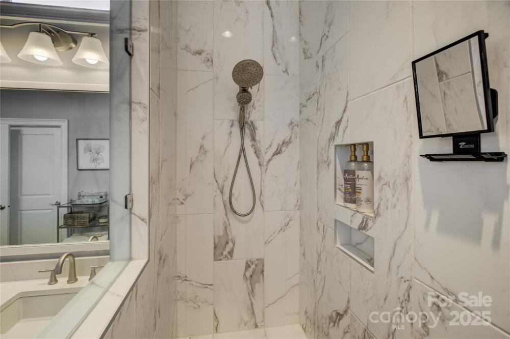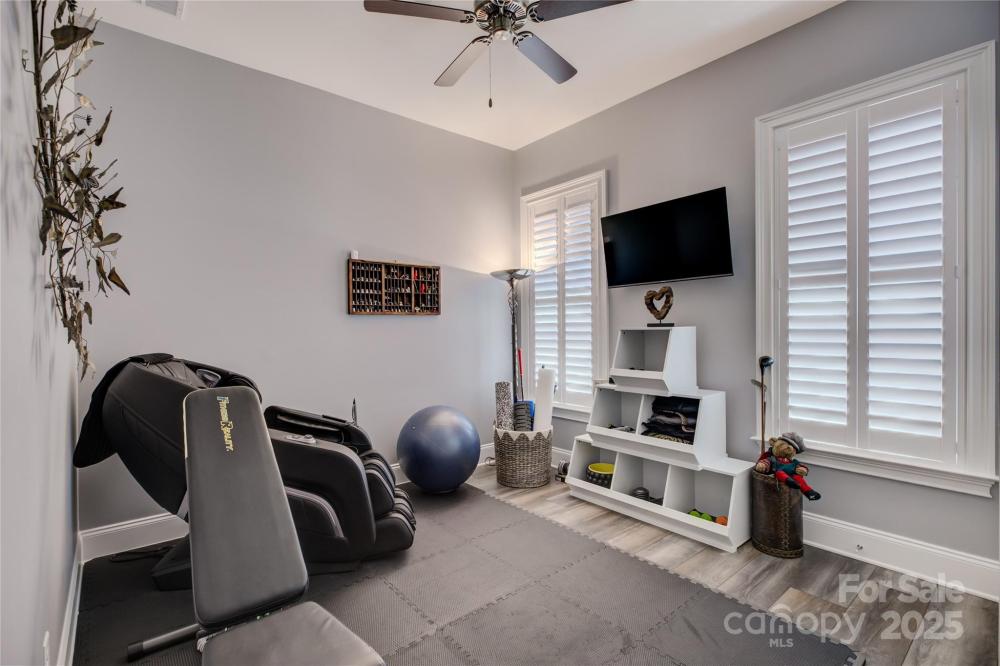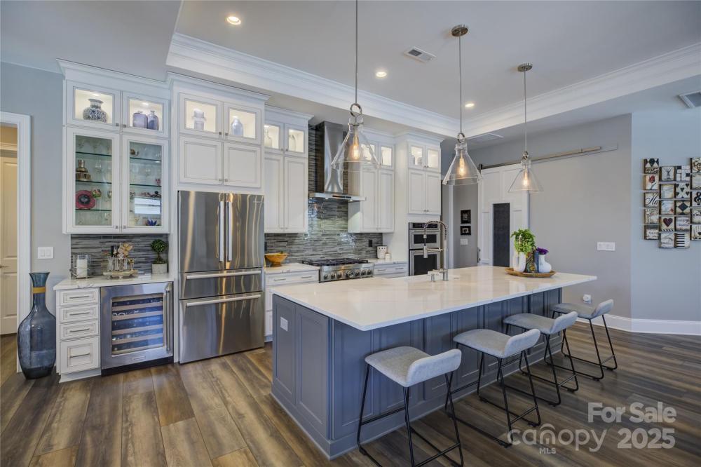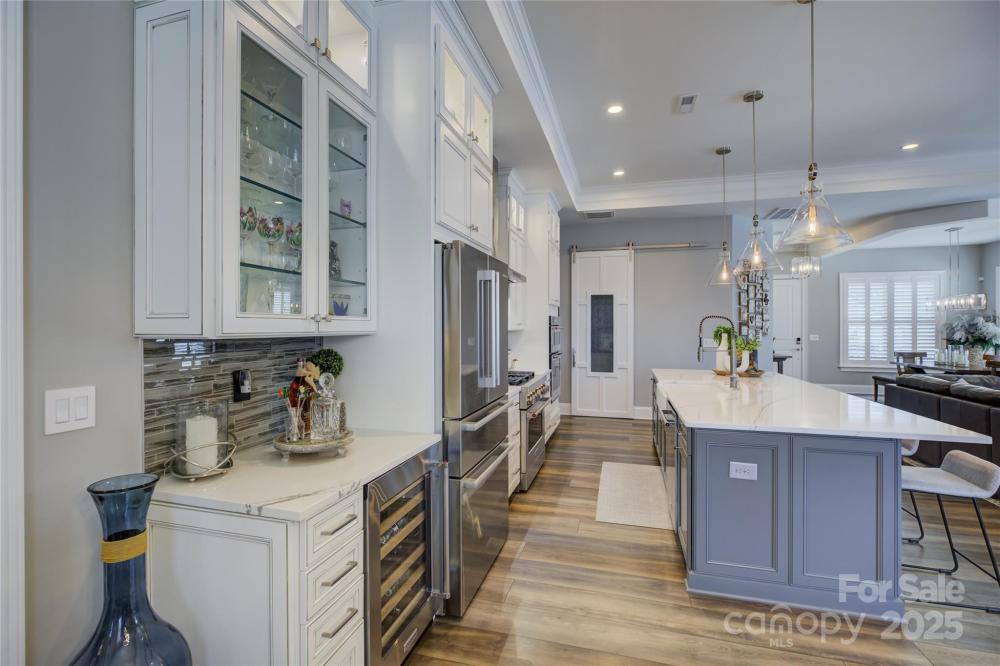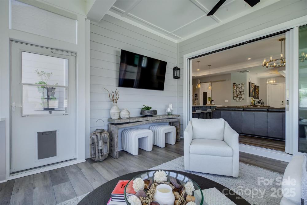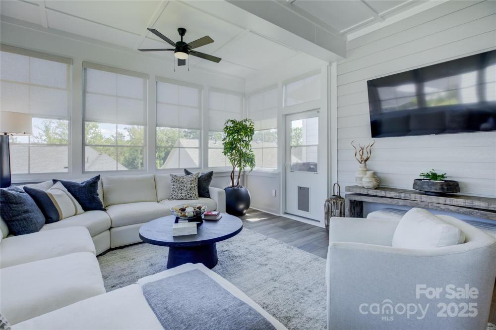 Exquisite home in the amenity-rich Regency at Palisades neighborhood. A rocking chair on the front porch offers a warm welcome to the home. The elegant dining room, situated just off the foyer, is ideal for both formal and casual entertaining. The shiplap-accented fireplace, with its rustic mantle, brings warmth to the great room. The gourmet kitchen is equipped with an oversized prep island that provides ample room for casual seating, a gas range/electric oven, and a stainless steel hood, extensive white cabinetry, and a truly impressive custom pantry. Just off the breakfast area is the private study, accessible through French doors. A fantastic all-season sunroom makes the most of the beautiful Carolina weather and opens onto a deck perfect for grilling out.. The spacious primary suite has a tray ceiling and an elegant chandelier. The spa-like bath has a marble walk-in shower, dual vanities, and custom cabinetry and shelving. An efficient laundry room, complete with a built-in folding shelf, cabinetry, and a drop zone, helps keep the home running smoothly. Spacious bedrooms 2 & 3 share a hall bath. Above the garage is a fabulous, insulated, and drywalled walk-up storage space that everyone needs. Regency HOA includes lawn maintenance, a 20,000 sq. ft clubhouse with an on-site concierge service, indoor & outdoor pools, tennis & pickleball courts.